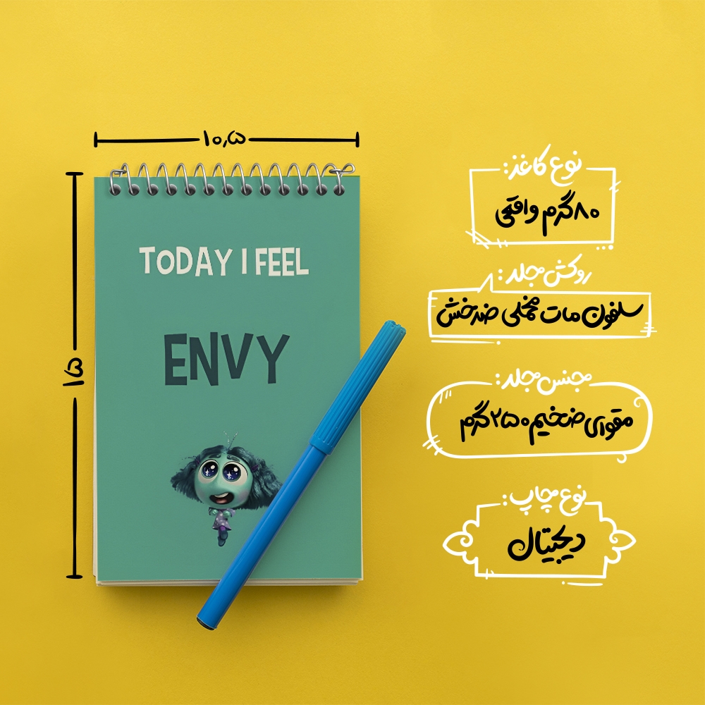 برند خندالو در زمینه تولید انواع دفاتر فانتزی و تحصیلی فعالیت میکند که به دلیل جذابیت ظاهری و طرح های متنوع طرفداران زیادی دارد. دفتر یادداشت خندالو طرح اینساید اوت (Envy) محصولی مناسب برای همه عاشقان لوازم التحریر است و همچنین همه کسانی که بنا به موقعیت تحصیل یا شغلشان با دفتر و نوشت افزار زیاد سر و کار دارند. در تولید دفتر یادداشت خندالو طرح اینساید اوت (Envy) از نوع صحافی فنر مارپیچ استفاده شده که در این نوع صحافی برگهها به راحتی چرخیده و یا بیرون آورده می شوند. دفتر های خندالو دارای جلد انعطاف پذیر از جنس مقوای گلاسه 250 گرم با روکش سلفون مات مخملی است که به شما امکان میدهد از دفتر خود بدون اینکه نگرانی از شکستن یا خراب شدن جلد را داشته باشید استفاده کنید و همچنین در این دفاتر از کاغذ 80 گرم با کیفیت استفاده شده که باعث میشود هنگام نوشتن به خوبی جوهر قلم بر روی صفحه نشسته و از خط خوردگیها جلوگیری کند. دفتر یادداشت خندالو با جنس و دوام مناسب، برگه های کاملاً سفید و خطوط طوسی دقیق را داراست که انسان را به نوشتن منظم و زیبا ترغیب میکند. طراحی کاملاً مناسب این دفاتر، به همراه کیفیت بالا، از آن یک محصول مورد علاقه و قابل اعتماد برای همه مقاطع تحصیلی میسازد. دفتر یادداشت خندالو طرح اینساید اوت (Envy) انتخابی هوشمندانه و مناسب برای افرادی است که به دنبال دفتری با کیفیت و کاربرد عالی هستند. این دفتر، همراه خوبی برای شما در تمام مراحل تحصیل و کار خواهد بود و تجربهای لذتبخش از نوشتن و آموختن را به شما هدیه میدهد.