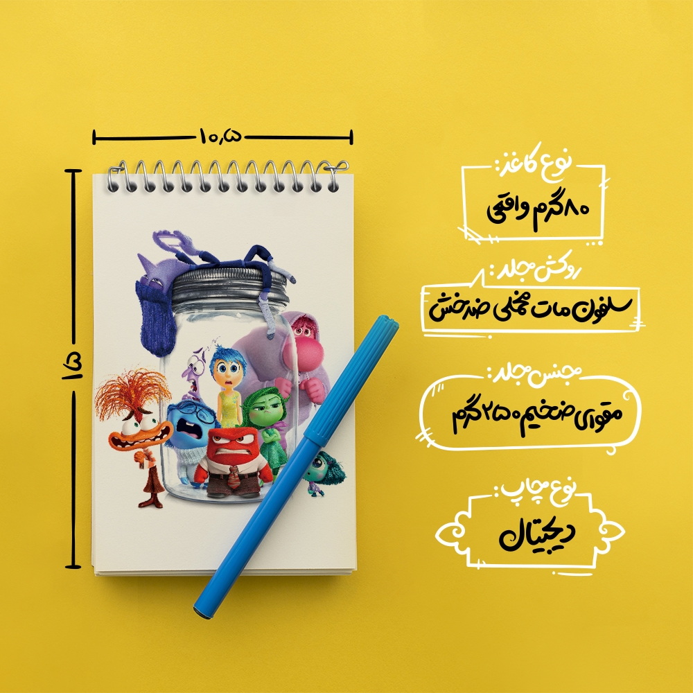 برند خندالو در زمینه تولید انواع دفاتر فانتزی و تحصیلی فعالیت میکند که به دلیل جذابیت ظاهری و طرح های متنوع طرفداران زیادی دارد. دفتر یادداشت خندالو طرح اینساید اوت (Inside Out) محصولی مناسب برای همه عاشقان لوازم التحریر است و همچنین همه کسانی که بنا به موقعیت تحصیل یا شغلشان با دفتر و نوشت افزار زیاد سر و کار دارند. در تولید دفتر یادداشت خندالو طرح اینساید اوت (Inside Out) از نوع صحافی فنر مارپیچ استفاده شده که در این نوع صحافی برگه‌ها به راحتی چرخیده و یا بیرون آورده می شوند.