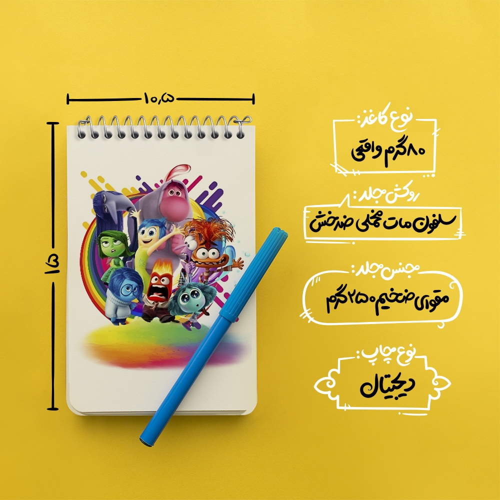 برند خندالو در زمینه تولید انواع دفاتر فانتزی و تحصیلی فعالیت میکند که به دلیل جذابیت ظاهری و طرح های متنوع طرفداران زیادی دارد. دفتر یادداشت خندالو طرح اینساید اوت (Inside Out) محصولی مناسب برای همه عاشقان لوازم التحریر است و همچنین همه کسانی که بنا به موقعیت تحصیل یا شغلشان با دفتر و نوشت افزار زیاد سر و کار دارند. در تولید دفتر یادداشت خندالو طرح اینساید اوت (Inside Out) از نوع صحافی فنر مارپیچ استفاده شده که در این نوع صحافی برگه‌ها به راحتی چرخیده و یا بیرون آورده می شوند.