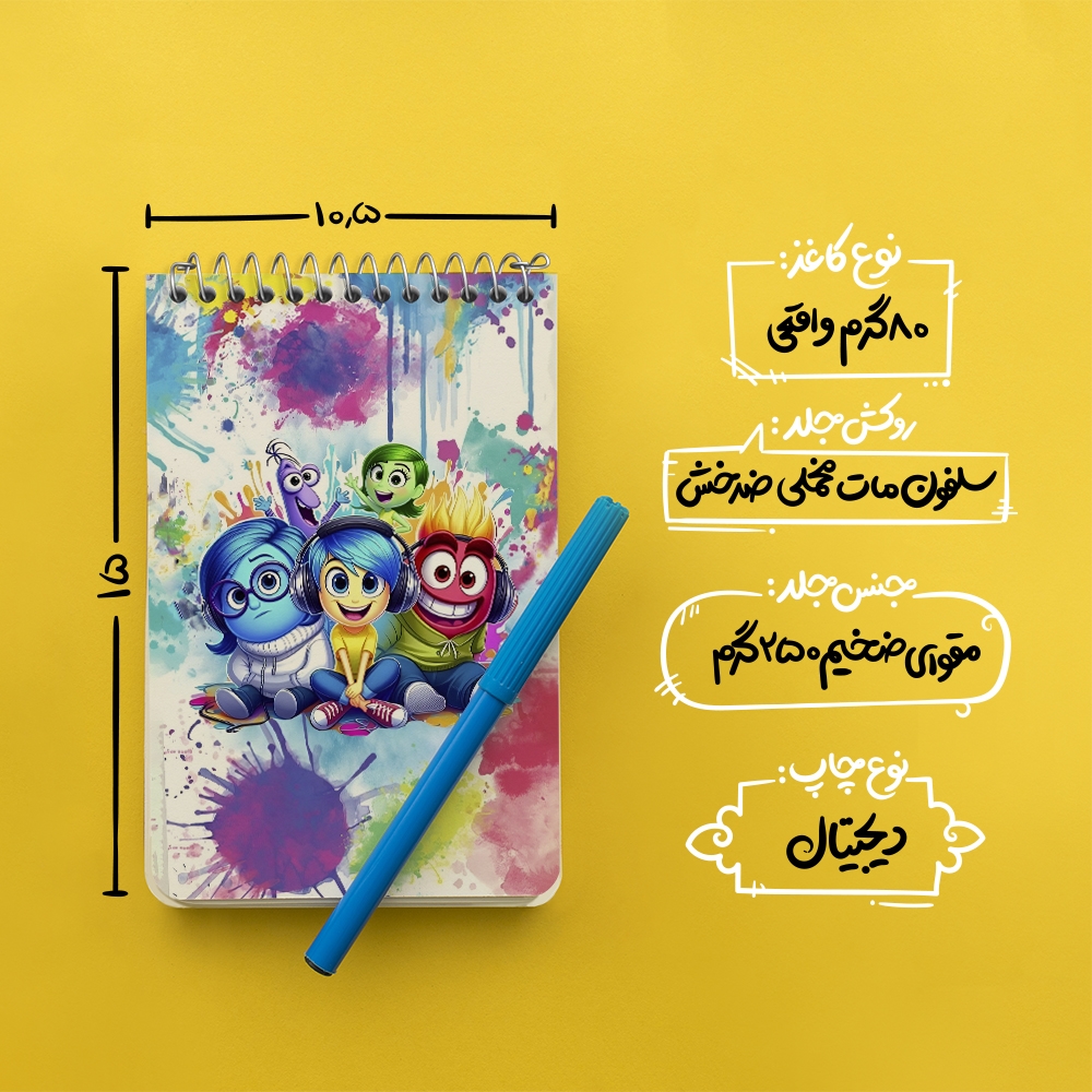 برند خندالو در زمینه تولید انواع دفاتر فانتزی و تحصیلی فعالیت میکند که به دلیل جذابیت ظاهری و طرح های متنوع طرفداران زیادی دارد. دفتر یادداشت خندالو طرح اینساید اوت (Inside Out) محصولی مناسب برای همه عاشقان لوازم التحریر است و همچنین همه کسانی که بنا به موقعیت تحصیل یا شغلشان با دفتر و نوشت افزار زیاد سر و کار دارند. در تولید دفتر یادداشت خندالو طرح اینساید اوت (Inside Out) از نوع صحافی فنر مارپیچ استفاده شده که در این نوع صحافی برگه‌ها به راحتی چرخیده و یا بیرون آورده می شوند.