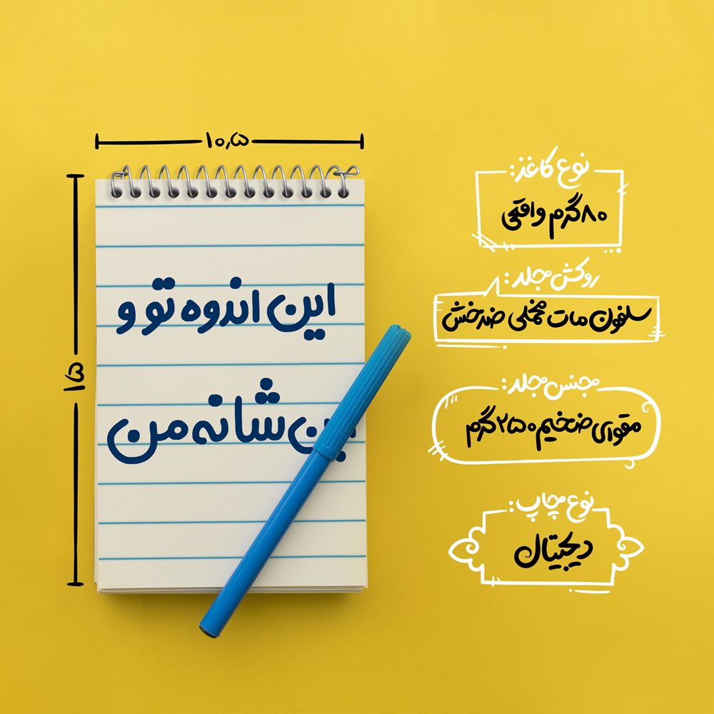 برند خندالو در زمینه تولید انواع دفاتر فانتزی و تحصیلی فعالیت میکند که به دلیل جذابیت ظاهری و طرح های متنوع طرفداران زیادی دارد. دفتر یادداشت خندالو طرح این اندوه من و این شانه تو محصولی مناسب برای همه عاشقان لوازم التحریر است و همچنین همه کسانی که بنا به موقعیت تحصیل یا شغلشان با دفتر و نوشت افزار زیاد سر و کار دارند. در تولید دفتر یادداشت خندالو طرح این اندوه من و این شانه تو از نوع صحافی فنر مارپیچ استفاده شده که در این نوع صحافی برگهها به راحتی چرخیده و یا بیرون آورده می شوند. دفتر های خندالو دارای جلد انعطاف پذیر از جنس مقوای گلاسه 250 گرم با روکش سلفون مات مخملی است که به شما امکان میدهد از دفتر خود بدون اینکه نگرانی از شکستن یا خراب شدن جلد را داشته باشید استفاده کنید و همچنین در این دفاتر از کاغذ 80 گرم با کیفیت استفاده شده که باعث میشود هنگام نوشتن به خوبی جوهر قلم بر روی صفحه نشسته و از خط خوردگیها جلوگیری کند. دفتر یادداشت خندالو با جنس و دوام مناسب، برگه های کاملاً سفید و خطوط طوسی دقیق را داراست که انسان را به نوشتن منظم و زیبا ترغیب میکند. طراحی کاملاً مناسب این دفاتر، به همراه کیفیت بالا، از آن یک محصول مورد علاقه و قابل اعتماد برای همه مقاطع تحصیلی میسازد. دفتر یادداشت خندالو طرح این اندوه من و این شانه تو انتخابی هوشمندانه و مناسب برای افرادی است که به دنبال دفتری با کیفیت و کاربرد عالی هستند. این دفتر، همراه خوبی برای شما در تمام مراحل تحصیل و کار خواهد بود و تجربهای لذتبخش از نوشتن و آموختن را به شما هدیه میدهد.