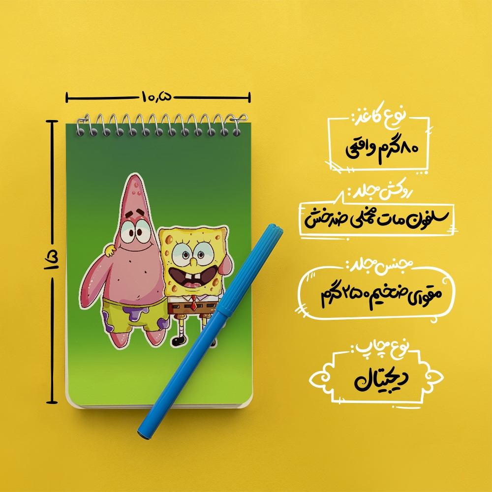 برند خندالو در زمینه تولید انواع دفاتر فانتزی و تحصیلی فعالیت میکند که به دلیل جذابیت ظاهری و طرح های متنوع طرفداران زیادی دارد. دفتر یادداشت خندالو طرح باب اسفنجی و پاتریک محصولی مناسب برای همه عاشقان لوازم التحریر است و همچنین همه کسانی که بنا به موقعیت تحصیل یا شغلشان با دفتر و نوشت افزار زیاد سر و کار دارند. در تولید دفتر یادداشت خندالو طرح باب اسفنجی و پاتریک از نوع صحافی فنر مارپیچ استفاده شده که در این نوع صحافی برگه‌ها به راحتی چرخیده و یا بیرون آورده می شوند.