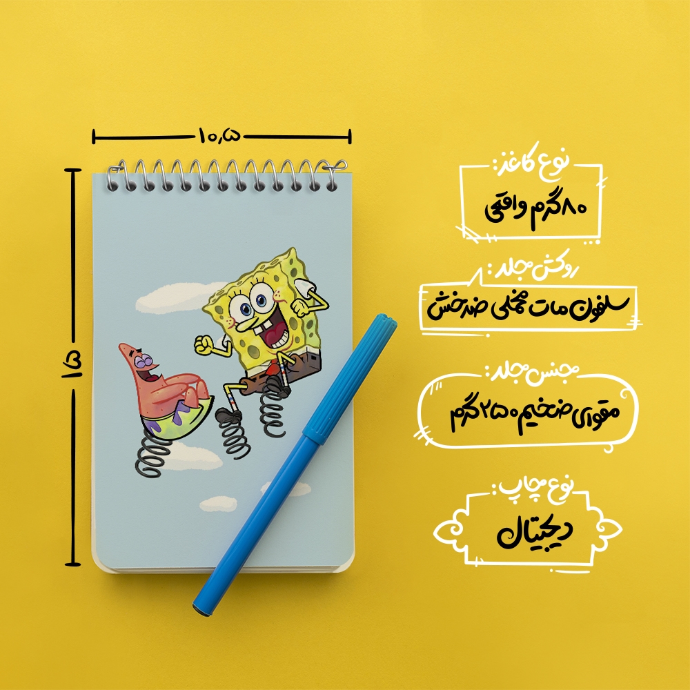 برند خندالو در زمینه تولید انواع دفاتر فانتزی و تحصیلی فعالیت میکند که به دلیل جذابیت ظاهری و طرح های متنوع طرفداران زیادی دارد. دفتر یادداشت خندالو طرح باب اسفنجی و پاتریک محصولی مناسب برای همه عاشقان لوازم التحریر است و همچنین همه کسانی که بنا به موقعیت تحصیل یا شغلشان با دفتر و نوشت افزار زیاد سر و کار دارند. در تولید دفتر یادداشت خندالو طرح باب اسفنجی و پاتریک از نوع صحافی فنر مارپیچ استفاده شده که در این نوع صحافی برگه‌ها به راحتی چرخیده و یا بیرون آورده می شوند.
