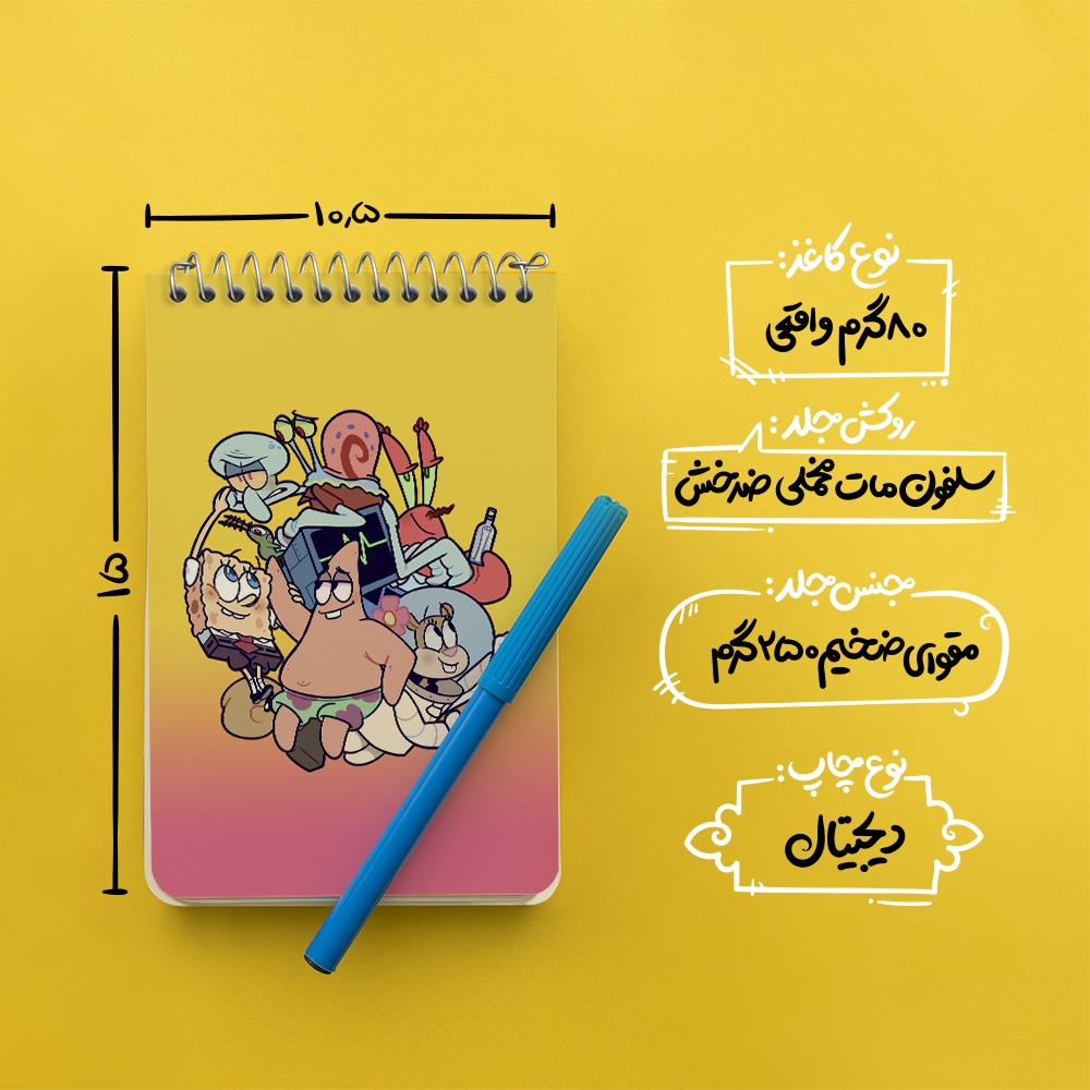 برند خندالو در زمینه تولید انواع دفاتر فانتزی و تحصیلی فعالیت میکند که به دلیل جذابیت ظاهری و طرح های متنوع طرفداران زیادی دارد. دفتر یادداشت خندالو طرح باب اسفنجی و پاتریک محصولی مناسب برای همه عاشقان لوازم التحریر است و همچنین همه کسانی که بنا به موقعیت تحصیل یا شغلشان با دفتر و نوشت افزار زیاد سر و کار دارند. در تولید دفتر یادداشت خندالو طرح باب اسفنجی و پاتریک از نوع صحافی فنر مارپیچ استفاده شده که در این نوع صحافی برگه‌ها به راحتی چرخیده و یا بیرون آورده می شوند.