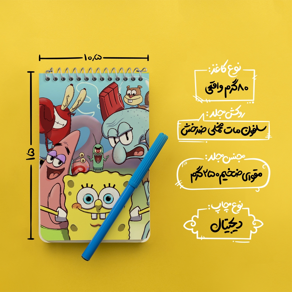 برند خندالو در زمینه تولید انواع دفاتر فانتزی و تحصیلی فعالیت میکند که به دلیل جذابیت ظاهری و طرح های متنوع طرفداران زیادی دارد. دفتر یادداشت خندالو طرح باب اسفنجی و پاتریک محصولی مناسب برای همه عاشقان لوازم التحریر است و همچنین همه کسانی که بنا به موقعیت تحصیل یا شغلشان با دفتر و نوشت افزار زیاد سر و کار دارند. در تولید دفتر یادداشت خندالو طرح باب اسفنجی و پاتریک از نوع صحافی فنر مارپیچ استفاده شده که در این نوع صحافی برگه‌ها به راحتی چرخیده و یا بیرون آورده می شوند.