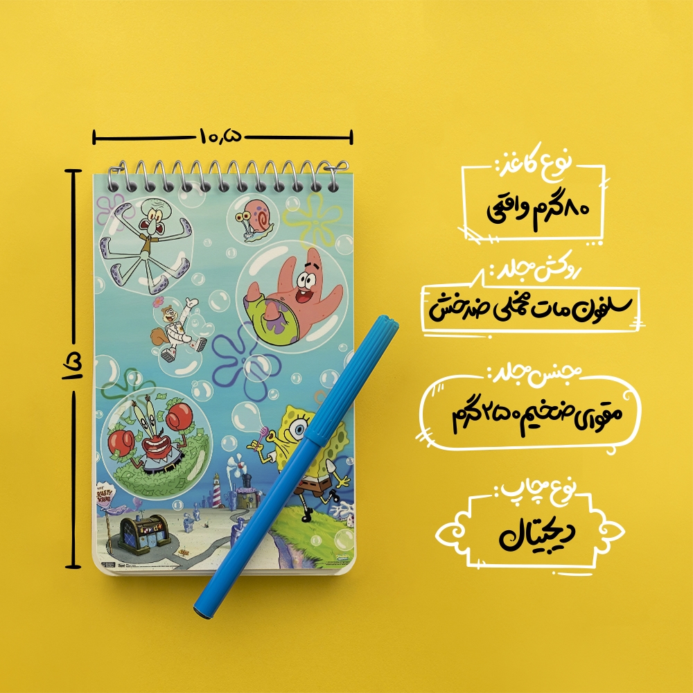 برند خندالو در زمینه تولید انواع دفاتر فانتزی و تحصیلی فعالیت میکند که به دلیل جذابیت ظاهری و طرح های متنوع طرفداران زیادی دارد. دفتر یادداشت خندالو طرح باب اسفنجی و پاتریک محصولی مناسب برای همه عاشقان لوازم التحریر است و همچنین همه کسانی که بنا به موقعیت تحصیل یا شغلشان با دفتر و نوشت افزار زیاد سر و کار دارند. در تولید دفتر یادداشت خندالو طرح باب اسفنجی و پاتریک از نوع صحافی فنر مارپیچ استفاده شده که در این نوع صحافی برگه‌ها به راحتی چرخیده و یا بیرون آورده می شوند.