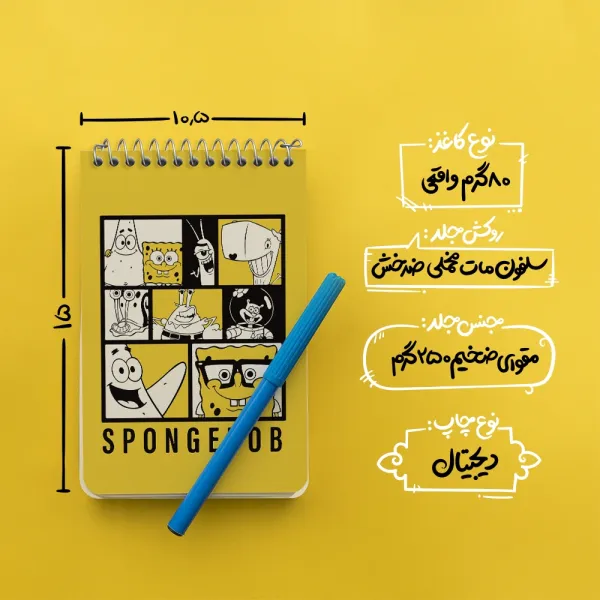 برند خندالو در زمینه تولید انواع دفاتر فانتزی و تحصیلی فعالیت میکند که به دلیل جذابیت ظاهری و طرح های متنوع طرفداران زیادی دارد. دفتر یادداشت خندالو طرح باب اسفنجی و پاتریک محصولی مناسب برای همه عاشقان لوازم التحریر است و همچنین همه کسانی که بنا به موقعیت تحصیل یا شغلشان با دفتر و نوشت افزار زیاد سر و کار دارند. در تولید دفتر یادداشت خندالو طرح باب اسفنجی و پاتریک از نوع صحافی فنر مارپیچ استفاده شده که در این نوع صحافی برگه‌ها به راحتی چرخیده و یا بیرون آورده می شوند.