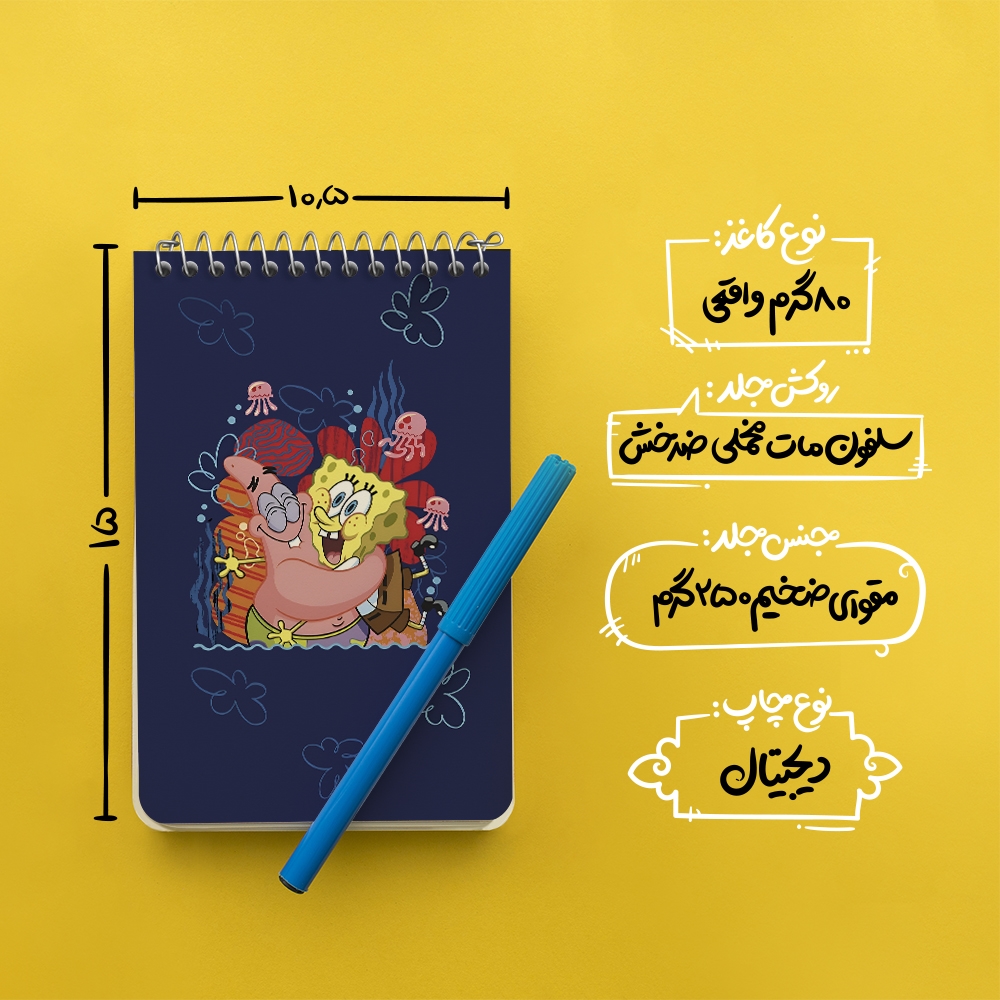 برند خندالو در زمینه تولید انواع دفاتر فانتزی و تحصیلی فعالیت میکند که به دلیل جذابیت ظاهری و طرح های متنوع طرفداران زیادی دارد. دفتر یادداشت خندالو طرح باب اسفنجی و پاتریک محصولی مناسب برای همه عاشقان لوازم التحریر است و همچنین همه کسانی که بنا به موقعیت تحصیل یا شغلشان با دفتر و نوشت افزار زیاد سر و کار دارند. در تولید دفتر یادداشت خندالو طرح باب اسفنجی و پاتریک از نوع صحافی فنر مارپیچ استفاده شده که در این نوع صحافی برگه‌ها به راحتی چرخیده و یا بیرون آورده می شوند.