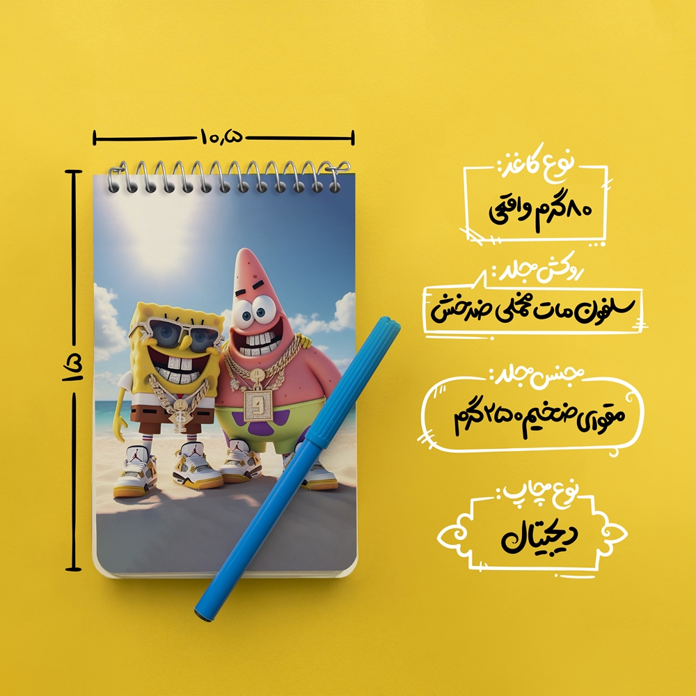 برند خندالو در زمینه تولید انواع دفاتر فانتزی و تحصیلی فعالیت میکند که به دلیل جذابیت ظاهری و طرح های متنوع طرفداران زیادی دارد. دفتر یادداشت خندالو طرح باب اسفنجی و پاتریک محصولی مناسب برای همه عاشقان لوازم التحریر است و همچنین همه کسانی که بنا به موقعیت تحصیل یا شغلشان با دفتر و نوشت افزار زیاد سر و کار دارند. در تولید دفتر یادداشت خندالو طرح باب اسفنجی و پاتریک از نوع صحافی فنر مارپیچ استفاده شده که در این نوع صحافی برگه‌ها به راحتی چرخیده و یا بیرون آورده می شوند.
