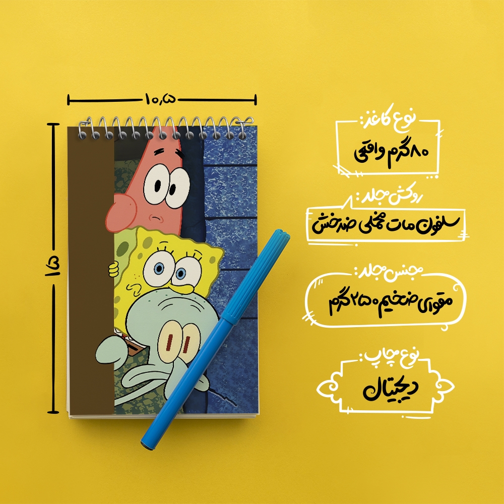 برند خندالو در زمینه تولید انواع دفاتر فانتزی و تحصیلی فعالیت میکند که به دلیل جذابیت ظاهری و طرح های متنوع طرفداران زیادی دارد. دفتر یادداشت خندالو طرح باب اسفنجی و پاتریک محصولی مناسب برای همه عاشقان لوازم التحریر است و همچنین همه کسانی که بنا به موقعیت تحصیل یا شغلشان با دفتر و نوشت افزار زیاد سر و کار دارند. در تولید دفتر یادداشت خندالو طرح باب اسفنجی و پاتریک از نوع صحافی فنر مارپیچ استفاده شده که در این نوع صحافی برگه‌ها به راحتی چرخیده و یا بیرون آورده می شوند.