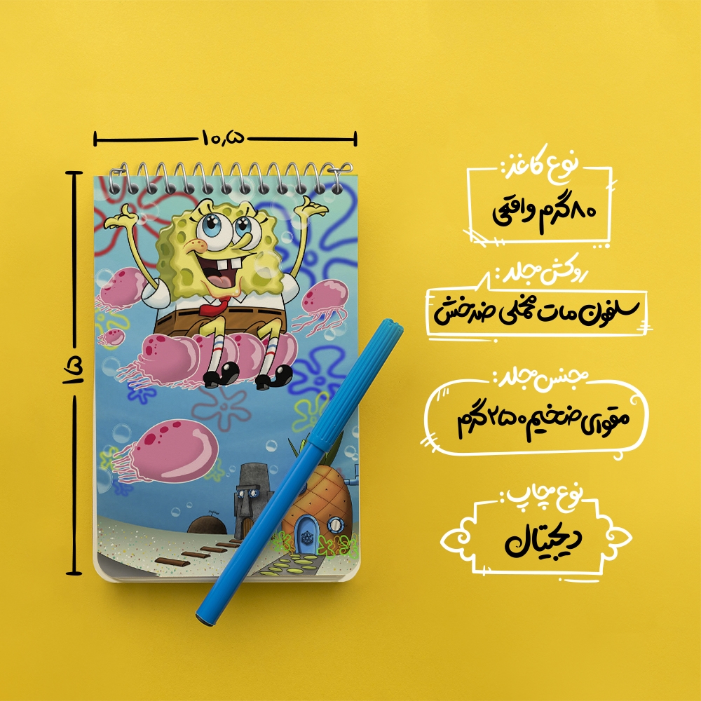 برند خندالو در زمینه تولید انواع دفاتر فانتزی و تحصیلی فعالیت میکند که به دلیل جذابیت ظاهری و طرح های متنوع طرفداران زیادی دارد. دفتر یادداشت خندالو طرح باب اسفنجی محصولی مناسب برای همه عاشقان لوازم التحریر است و همچنین همه کسانی که بنا به موقعیت تحصیل یا شغلشان با دفتر و نوشت افزار زیاد سر و کار دارند. در تولید دفتر یادداشت خندالو طرح باب اسفنجی از نوع صحافی فنر مارپیچ استفاده شده که در این نوع صحافی برگه‌ها به راحتی چرخیده و یا بیرون آورده می شوند.