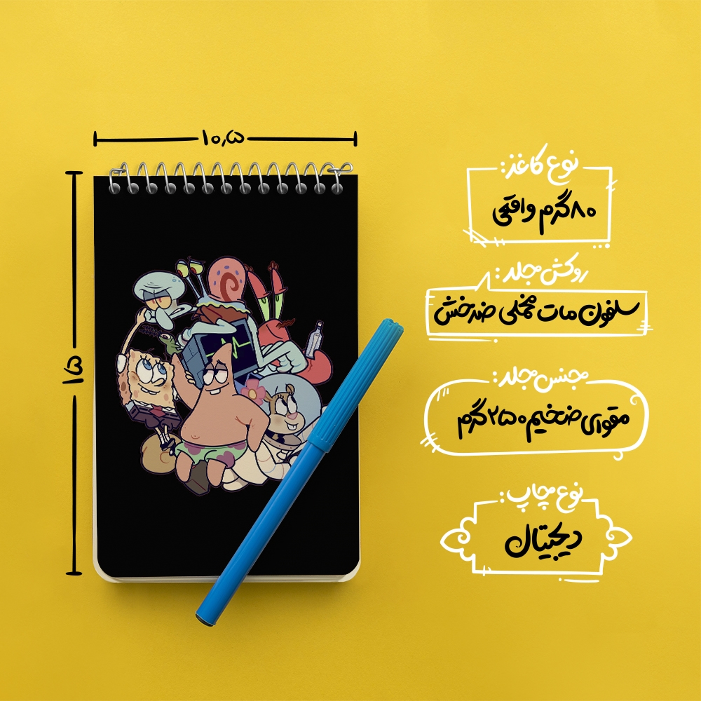 برند خندالو در زمینه تولید انواع دفاتر فانتزی و تحصیلی فعالیت میکند که به دلیل جذابیت ظاهری و طرح های متنوع طرفداران زیادی دارد. دفتر یادداشت خندالو طرح باب اسفنجی محصولی مناسب برای همه عاشقان لوازم التحریر است و همچنین همه کسانی که بنا به موقعیت تحصیل یا شغلشان با دفتر و نوشت افزار زیاد سر و کار دارند. در تولید دفتر یادداشت خندالو طرح باب اسفنجی از نوع صحافی فنر مارپیچ استفاده شده که در این نوع صحافی برگه‌ها به راحتی چرخیده و یا بیرون آورده می شوند.