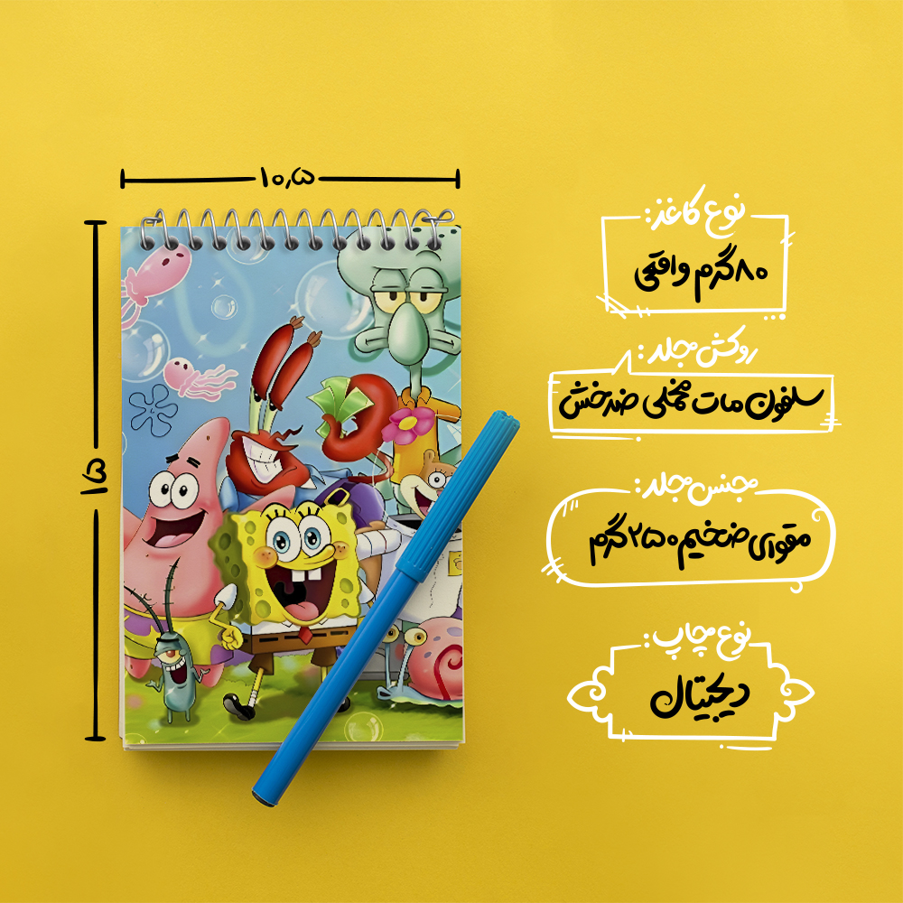 برند خندالو در زمینه تولید انواع دفاتر فانتزی و تحصیلی فعالیت میکند که به دلیل جذابیت ظاهری و طرح های متنوع طرفداران زیادی دارد. دفتر یادداشت خندالو طرح باب اسفنجی محصولی مناسب برای همه عاشقان لوازم التحریر است و همچنین همه کسانی که بنا به موقعیت تحصیل یا شغلشان با دفتر و نوشت افزار زیاد سر و کار دارند. در تولید دفتر یادداشت خندالو طرح باب اسفنجی از نوع صحافی فنر مارپیچ استفاده شده که در این نوع صحافی برگه‌ها به راحتی چرخیده و یا بیرون آورده می شوند.