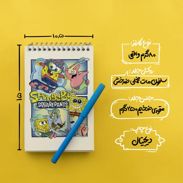برند خندالو در زمینه تولید انواع دفاتر فانتزی و تحصیلی فعالیت میکند که به دلیل جذابیت ظاهری و طرح های متنوع طرفداران زیادی دارد. دفتر یادداشت خندالو طرح باب اسفنجی محصولی مناسب برای همه عاشقان لوازم التحریر است و همچنین همه کسانی که بنا به موقعیت تحصیل یا شغلشان با دفتر و نوشت افزار زیاد سر و کار دارند. در تولید دفتر یادداشت خندالو طرح باب اسفنجی از نوع صحافی فنر مارپیچ استفاده شده که در این نوع صحافی برگه‌ها به راحتی چرخیده و یا بیرون آورده می شوند.