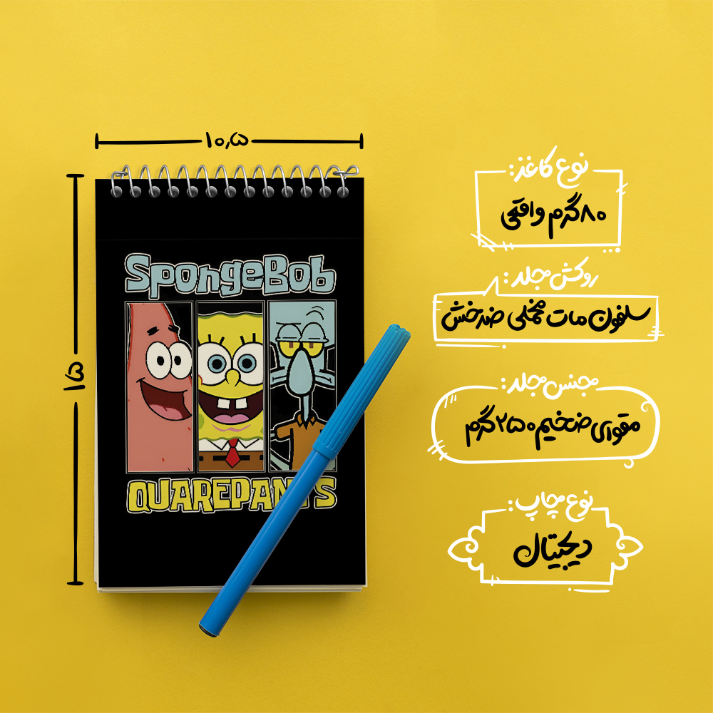 برند خندالو در زمینه تولید انواع دفاتر فانتزی و تحصیلی فعالیت میکند که به دلیل جذابیت ظاهری و طرح های متنوع طرفداران زیادی دارد. دفتر یادداشت خندالو طرح باب اسفنجی محصولی مناسب برای همه عاشقان لوازم التحریر است و همچنین همه کسانی که بنا به موقعیت تحصیل یا شغلشان با دفتر و نوشت افزار زیاد سر و کار دارند. در تولید دفتر یادداشت خندالو طرح باب اسفنجی از نوع صحافی فنر مارپیچ استفاده شده که در این نوع صحافی برگه‌ها به راحتی چرخیده و یا بیرون آورده می شوند.