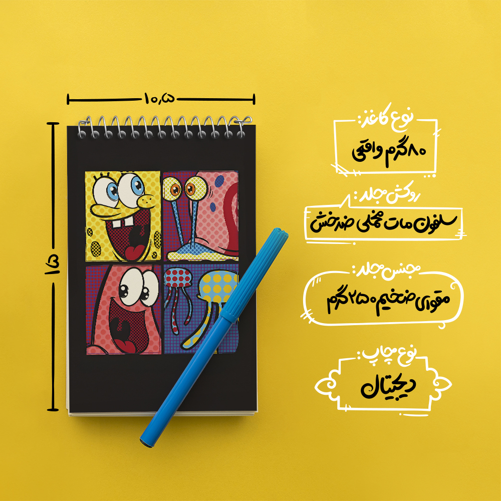 برند خندالو در زمینه تولید انواع دفاتر فانتزی و تحصیلی فعالیت میکند که به دلیل جذابیت ظاهری و طرح های متنوع طرفداران زیادی دارد. دفتر یادداشت خندالو طرح باب اسفنجی محصولی مناسب برای همه عاشقان لوازم التحریر است و همچنین همه کسانی که بنا به موقعیت تحصیل یا شغلشان با دفتر و نوشت افزار زیاد سر و کار دارند. در تولید دفتر یادداشت خندالو طرح باب اسفنجی از نوع صحافی فنر مارپیچ استفاده شده که در این نوع صحافی برگه‌ها به راحتی چرخیده و یا بیرون آورده می شوند.