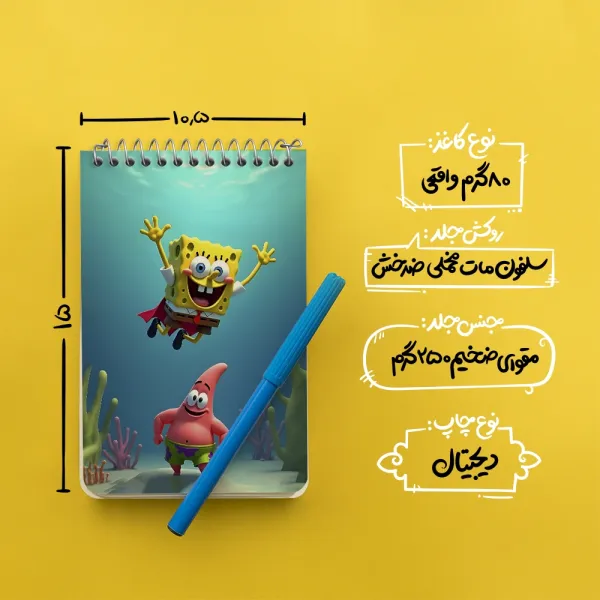 برند خندالو در زمینه تولید انواع دفاتر فانتزی و تحصیلی فعالیت میکند که به دلیل جذابیت ظاهری و طرح های متنوع طرفداران زیادی دارد. دفتر یادداشت خندالو طرح باب اسفنجی محصولی مناسب برای همه عاشقان لوازم التحریر است و همچنین همه کسانی که بنا به موقعیت تحصیل یا شغلشان با دفتر و نوشت افزار زیاد سر و کار دارند. در تولید دفتر یادداشت خندالو طرح باب اسفنجی از نوع صحافی فنر مارپیچ استفاده شده که در این نوع صحافی برگه‌ها به راحتی چرخیده و یا بیرون آورده می شوند.