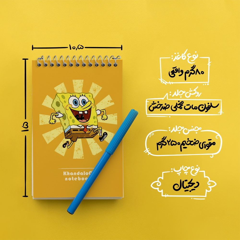 برند خندالو در زمینه تولید انواع دفاتر فانتزی و تحصیلی فعالیت میکند که به دلیل جذابیت ظاهری و طرح های متنوع طرفداران زیادی دارد. دفتر یادداشت خندالو طرح باب اسفنجی محصولی مناسب برای همه عاشقان لوازم التحریر است و همچنین همه کسانی که بنا به موقعیت تحصیل یا شغلشان با دفتر و نوشت افزار زیاد سر و کار دارند. در تولید دفتر یادداشت خندالو طرح باب اسفنجی از نوع صحافی فنر مارپیچ استفاده شده که در این نوع صحافی برگه‌ها به راحتی چرخیده و یا بیرون آورده می شوند.