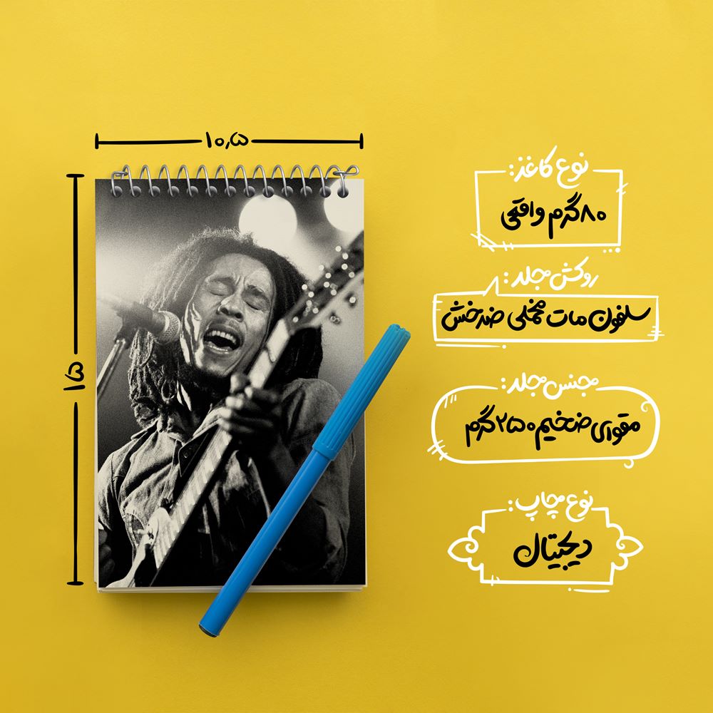 برند خندالو در زمینه تولید انواع دفاتر فانتزی و تحصیلی فعالیت میکند که به دلیل جذابیت ظاهری و طرح های متنوع طرفداران زیادی دارد. دفتر یادداشت خندالو طرح باب مارلی Bob Marley محصولی مناسب برای همه عاشقان لوازم التحریر است و همچنین همه کسانی که بنا به موقعیت تحصیل یا شغلشان با دفتر و نوشت افزار زیاد سر و کار دارند. در تولید دفتر یادداشت خندالو طرح باب مارلی Bob Marley از نوع صحافی فنر مارپیچ استفاده شده که در این نوع صحافی برگه‌ها به راحتی چرخیده و یا بیرون آورده می شوند.