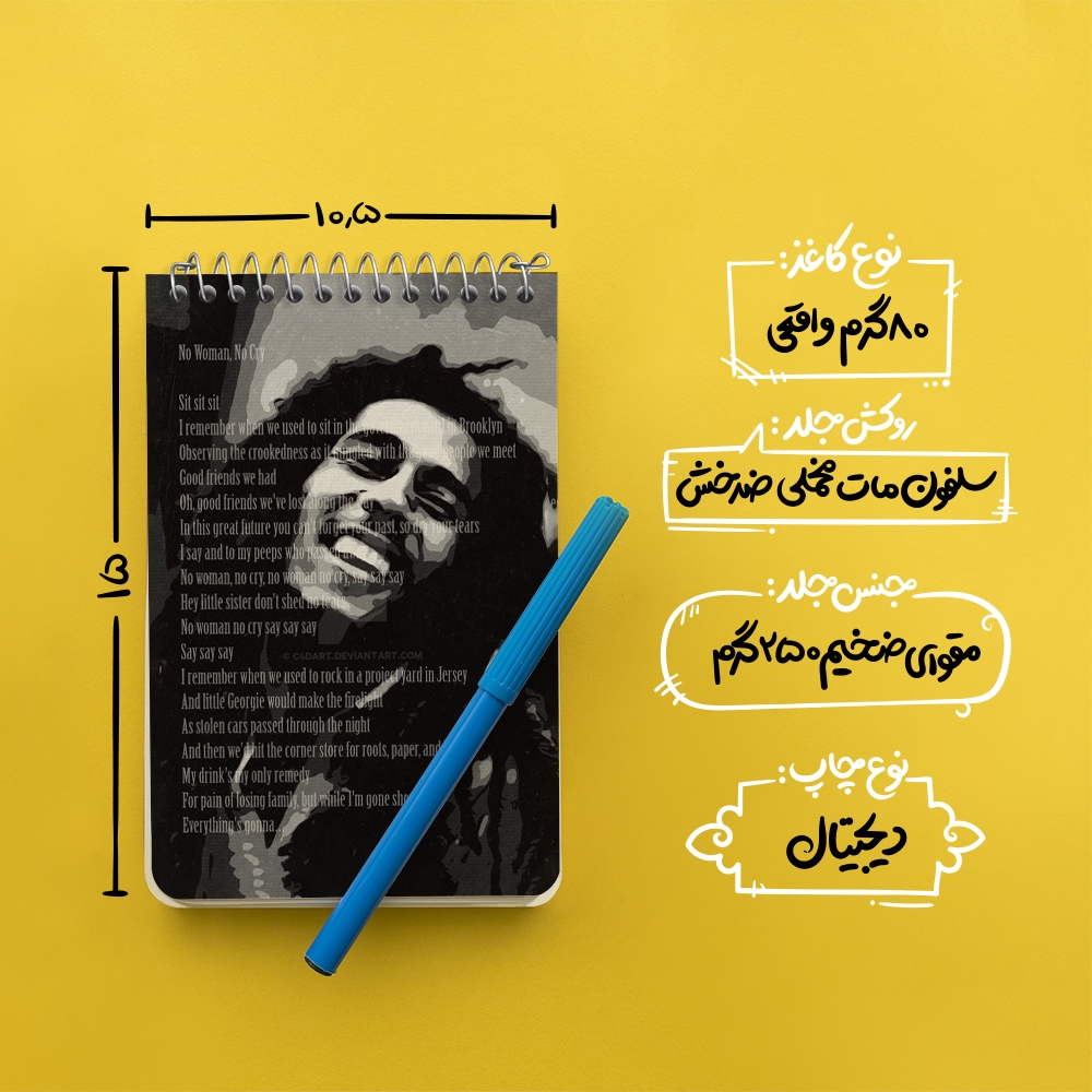 برند خندالو در زمینه تولید انواع دفاتر فانتزی و تحصیلی فعالیت میکند که به دلیل جذابیت ظاهری و طرح های متنوع طرفداران زیادی دارد. دفتر یادداشت خندالو طرح باب مارلی (Bob Marley) محصولی مناسب برای همه عاشقان لوازم التحریر است و همچنین همه کسانی که بنا به موقعیت تحصیل یا شغلشان با دفتر و نوشت افزار زیاد سر و کار دارند. در تولید دفتر یادداشت خندالو طرح باب مارلی (Bob Marley) از نوع صحافی فنر مارپیچ استفاده شده که در این نوع صحافی برگه‌ها به راحتی چرخیده و یا بیرون آورده می شوند.