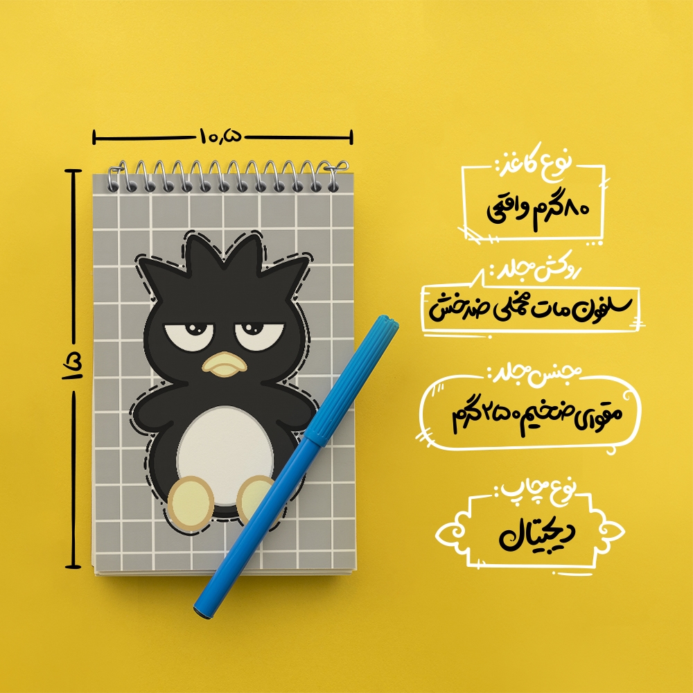 برند خندالو در زمینه تولید انواع دفاتر فانتزی و تحصیلی فعالیت میکند که به دلیل جذابیت ظاهری و طرح های متنوع طرفداران زیادی دارد. دفتر یادداشت خندالو طرح باتز مارو (Badtz-Maru) محصولی مناسب برای همه عاشقان لوازم التحریر است و همچنین همه کسانی که بنا به موقعیت تحصیل یا شغلشان با دفتر و نوشت افزار زیاد سر و کار دارند. در تولید دفتر یادداشت خندالو طرح باتز مارو (Badtz-Maru) از نوع صحافی فنر مارپیچ استفاده شده که در این نوع صحافی برگهها به راحتی چرخیده و یا بیرون آورده می شوند. دفتر های خندالو دارای جلد انعطاف پذیر از جنس مقوای گلاسه 250 گرم با روکش سلفون مات مخملی است که به شما امکان میدهد از دفتر خود بدون اینکه نگرانی از شکستن یا خراب شدن جلد را داشته باشید استفاده کنید و همچنین در این دفاتر از کاغذ 80 گرم با کیفیت استفاده شده که باعث میشود هنگام نوشتن به خوبی جوهر قلم بر روی صفحه نشسته و از خط خوردگیها جلوگیری کند. دفتر یادداشت خندالو با جنس و دوام مناسب، برگه های کاملاً سفید و خطوط طوسی دقیق را داراست که انسان را به نوشتن منظم و زیبا ترغیب میکند. طراحی کاملاً مناسب این دفاتر، به همراه کیفیت بالا، از آن یک محصول مورد علاقه و قابل اعتماد برای همه مقاطع تحصیلی میسازد. دفتر یادداشت خندالو طرح باتز مارو (Badtz-Maru) انتخابی هوشمندانه و مناسب برای افرادی است که به دنبال دفتری با کیفیت و کاربرد عالی هستند. این دفتر، همراه خوبی برای شما در تمام مراحل تحصیل و کار خواهد بود و تجربهای لذتبخش از نوشتن و آموختن را به شما هدیه میدهد.