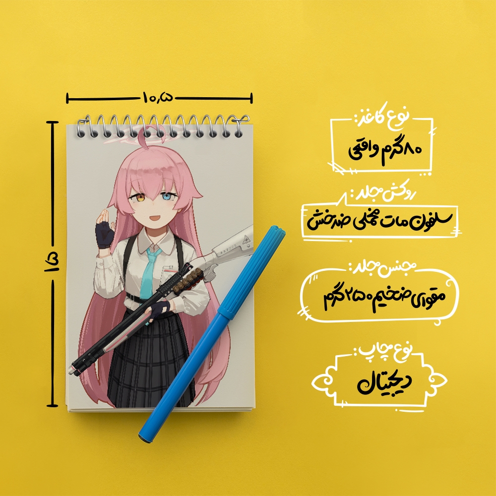 برند خندالو در زمینه تولید انواع دفاتر فانتزی و تحصیلی فعالیت میکند که به دلیل جذابیت ظاهری و طرح های متنوع طرفداران زیادی دارد. دفتر یادداشت خندالو طرح بازی آرشیو آبی (Blue Archive) محصولی مناسب برای همه عاشقان لوازم التحریر است و همچنین همه کسانی که بنا به موقعیت تحصیل یا شغلشان با دفتر و نوشت افزار زیاد سر و کار دارند. در تولید دفتر یادداشت خندالو طرح بازی آرشیو آبی (Blue Archive) از نوع صحافی فنر مارپیچ استفاده شده که در این نوع صحافی برگه‌ها به راحتی چرخیده و یا بیرون آورده می شوند.