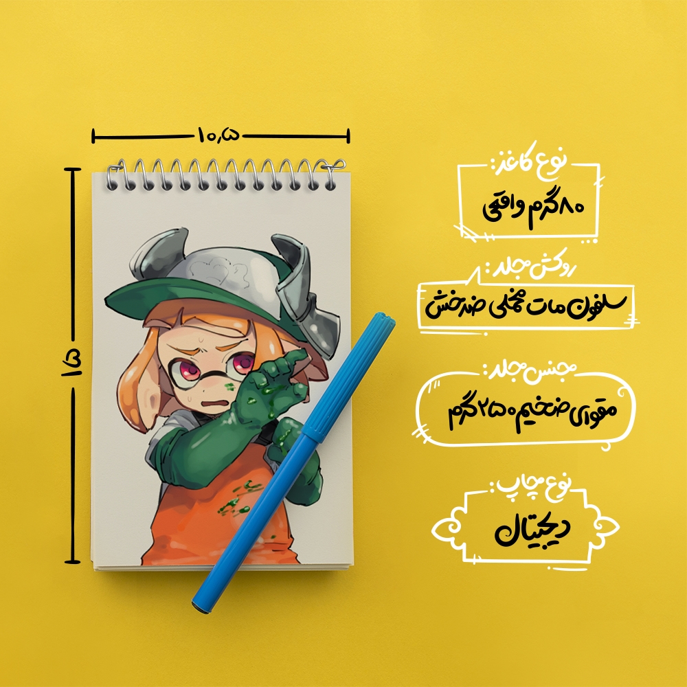 برند خندالو در زمینه تولید انواع دفاتر فانتزی و تحصیلی فعالیت میکند که به دلیل جذابیت ظاهری و طرح های متنوع طرفداران زیادی دارد. دفتر یادداشت خندالو طرح بازی اسپلاتون (Splatoon) محصولی مناسب برای همه عاشقان لوازم التحریر است و همچنین همه کسانی که بنا به موقعیت تحصیل یا شغلشان با دفتر و نوشت افزار زیاد سر و کار دارند. در تولید دفتر یادداشت خندالو طرح بازی اسپلاتون (Splatoon) از نوع صحافی فنر مارپیچ استفاده شده که در این نوع صحافی برگهها به راحتی چرخیده و یا بیرون آورده می شوند. دفتر های خندالو دارای جلد انعطاف پذیر از جنس مقوای گلاسه 250 گرم با روکش سلفون مات مخملی است که به شما امکان میدهد از دفتر خود بدون اینکه نگرانی از شکستن یا خراب شدن جلد را داشته باشید استفاده کنید و همچنین در این دفاتر از کاغذ 80 گرم با کیفیت استفاده شده که باعث میشود هنگام نوشتن به خوبی جوهر قلم بر روی صفحه نشسته و از خط خوردگیها جلوگیری کند. دفتر یادداشت خندالو با جنس و دوام مناسب، برگه های کاملاً سفید و خطوط طوسی دقیق را داراست که انسان را به نوشتن منظم و زیبا ترغیب میکند. طراحی کاملاً مناسب این دفاتر، به همراه کیفیت بالا، از آن یک محصول مورد علاقه و قابل اعتماد برای همه مقاطع تحصیلی میسازد. دفتر یادداشت خندالو طرح بازی اسپلاتون (Splatoon) انتخابی هوشمندانه و مناسب برای افرادی است که به دنبال دفتری با کیفیت و کاربرد عالی هستند. این دفتر، همراه خوبی برای شما در تمام مراحل تحصیل و کار خواهد بود و تجربهای لذتبخش از نوشتن و آموختن را به شما هدیه میدهد.