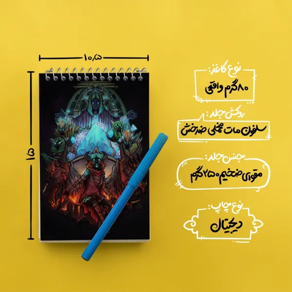 برند خندالو در زمینه تولید انواع دفاتر فانتزی و تحصیلی فعالیت میکند که به دلیل جذابیت ظاهری و طرح های متنوع طرفداران زیادی دارد. دفتر یادداشت خندالو طرح بازی دوتا (Dota 2) محصولی مناسب برای همه عاشقان لوازم التحریر است و همچنین همه کسانی که بنا به موقعیت تحصیل یا شغلشان با دفتر و نوشت افزار زیاد سر و کار دارند. در تولید دفتر یادداشت خندالو طرح بازی دوتا (Dota 2) از نوع صحافی فنر مارپیچ استفاده شده که در این نوع صحافی برگه‌ها به راحتی چرخیده و یا بیرون آورده می شوند.
