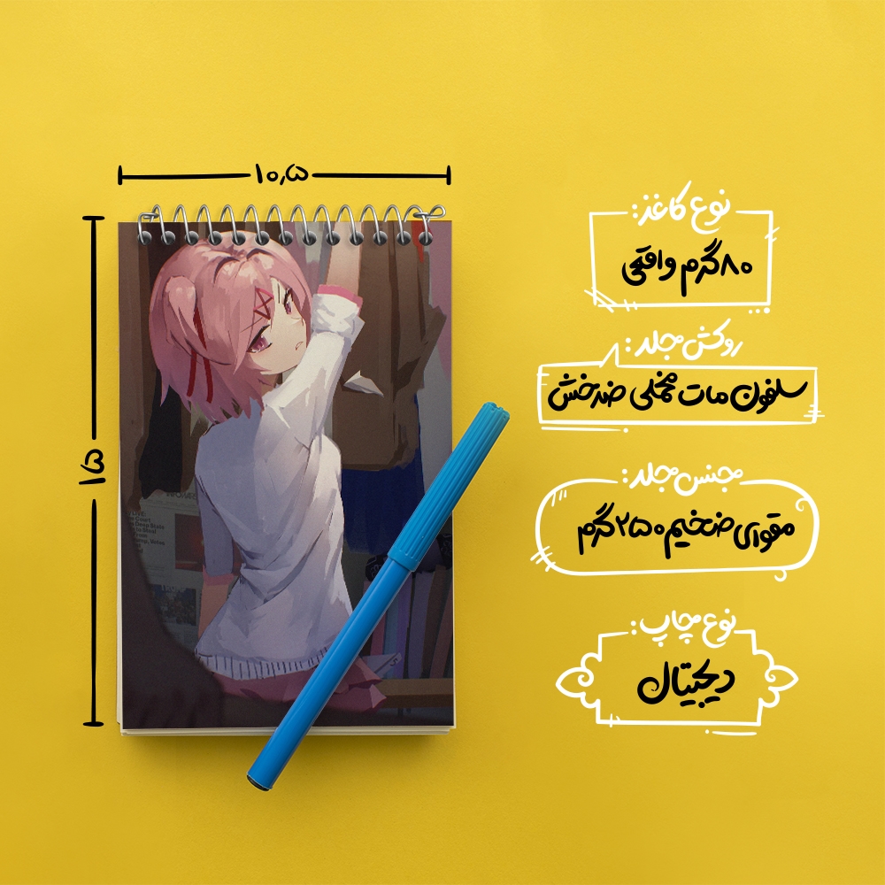 برند خندالو در زمینه تولید انواع دفاتر فانتزی و تحصیلی فعالیت میکند که به دلیل جذابیت ظاهری و طرح های متنوع طرفداران زیادی دارد. دفتر یادداشت خندالو طرح بازی دوکی دوکی (Doki Doki) محصولی مناسب برای همه عاشقان لوازم التحریر است و همچنین همه کسانی که بنا به موقعیت تحصیل یا شغلشان با دفتر و نوشت افزار زیاد سر و کار دارند. در تولید دفتر یادداشت خندالو طرح بازی دوکی دوکی (Doki Doki) از نوع صحافی فنر مارپیچ استفاده شده که در این نوع صحافی برگهها به راحتی چرخیده و یا بیرون آورده می شوند. دفتر های خندالو دارای جلد انعطاف پذیر از جنس مقوای گلاسه 250 گرم با روکش سلفون مات مخملی است که به شما امکان میدهد از دفتر خود بدون اینکه نگرانی از شکستن یا خراب شدن جلد را داشته باشید استفاده کنید و همچنین در این دفاتر از کاغذ 80 گرم با کیفیت استفاده شده که باعث میشود هنگام نوشتن به خوبی جوهر قلم بر روی صفحه نشسته و از خط خوردگیها جلوگیری کند. دفتر یادداشت خندالو با جنس و دوام مناسب، برگه های کاملاً سفید و خطوط طوسی دقیق را داراست که انسان را به نوشتن منظم و زیبا ترغیب میکند. طراحی کاملاً مناسب این دفاتر، به همراه کیفیت بالا، از آن یک محصول مورد علاقه و قابل اعتماد برای همه مقاطع تحصیلی میسازد. دفتر یادداشت خندالو طرح بازی دوکی دوکی (Doki Doki) انتخابی هوشمندانه و مناسب برای افرادی است که به دنبال دفتری با کیفیت و کاربرد عالی هستند. این دفتر، همراه خوبی برای شما در تمام مراحل تحصیل و کار خواهد بود و تجربهای لذتبخش از نوشتن و آموختن را به شما هدیه میدهد.