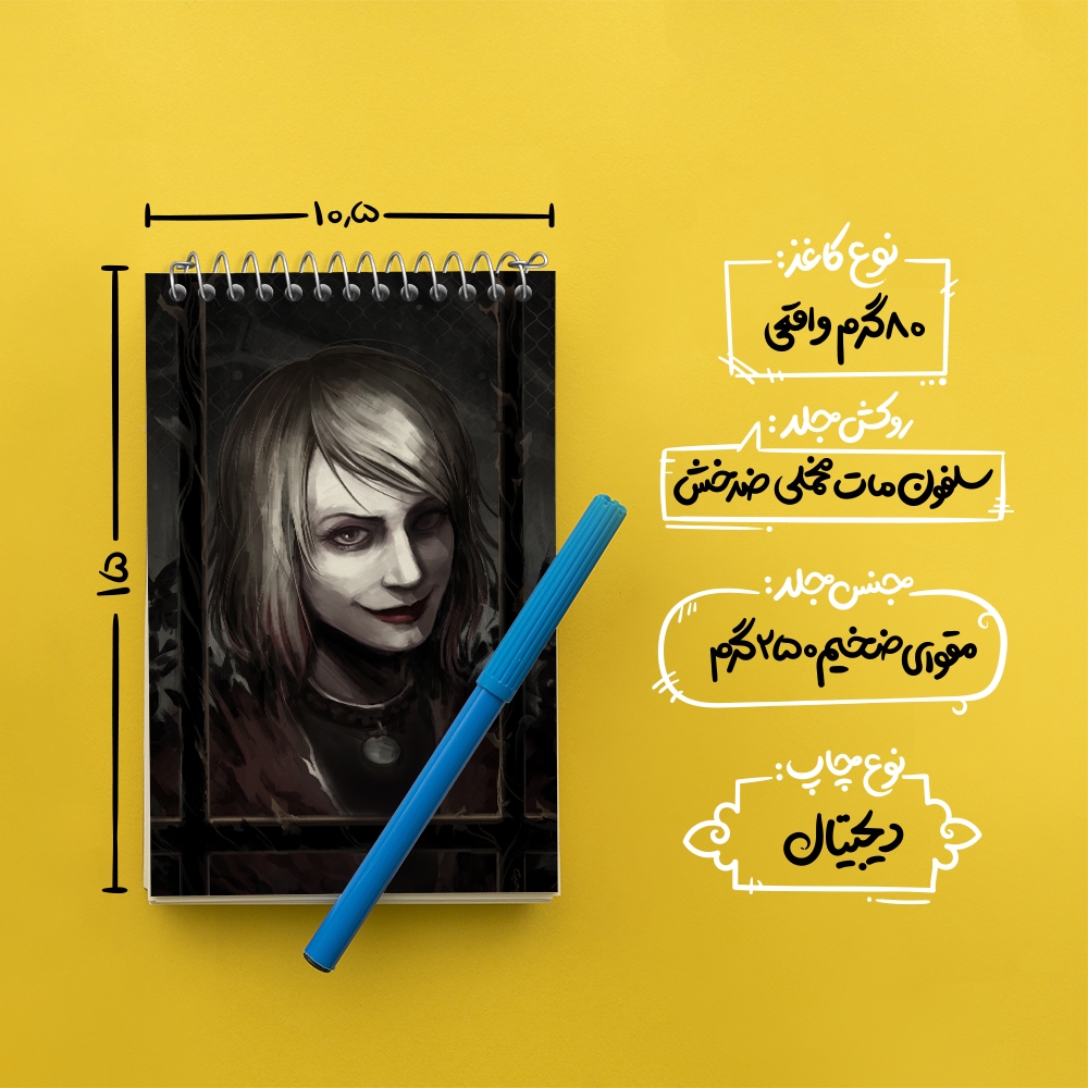 برند خندالو در زمینه تولید انواع دفاتر فانتزی و تحصیلی فعالیت میکند که به دلیل جذابیت ظاهری و طرح های متنوع طرفداران زیادی دارد. دفتر یادداشت خندالو طرح بازی سایلنت هیل‌ (Silent Hill) محصولی مناسب برای همه عاشقان لوازم التحریر است و همچنین همه کسانی که بنا به موقعیت تحصیل یا شغلشان با دفتر و نوشت افزار زیاد سر و کار دارند. در تولید دفتر یادداشت خندالو طرح بازی سایلنت هیل‌ (Silent Hill) از نوع صحافی فنر مارپیچ استفاده شده که در این نوع صحافی برگه‌ها به راحتی چرخیده و یا بیرون آورده می شوند.