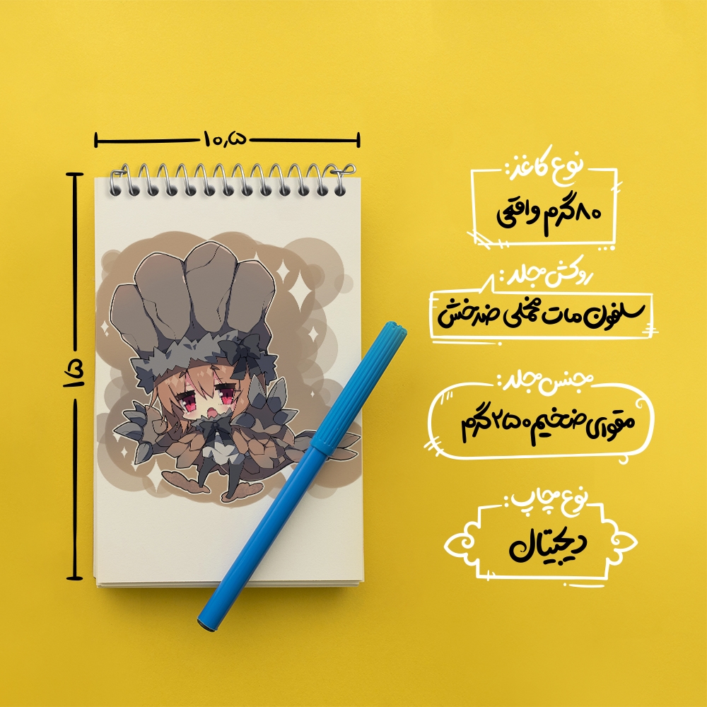 برند خندالو در زمینه تولید انواع دفاتر فانتزی و تحصیلی فعالیت میکند که به دلیل جذابیت ظاهری و طرح های متنوع طرفداران زیادی دارد. دفتر یادداشت خندالو طرح بازی شکارچی هیولا (Monster Hunter) محصولی مناسب برای همه عاشقان لوازم التحریر است و همچنین همه کسانی که بنا به موقعیت تحصیل یا شغلشان با دفتر و نوشت افزار زیاد سر و کار دارند. در تولید دفتر یادداشت خندالو طرح بازی شکارچی هیولا (Monster Hunter) از نوع صحافی فنر مارپیچ استفاده شده که در این نوع صحافی برگه‌ها به راحتی چرخیده و یا بیرون آورده می شوند.