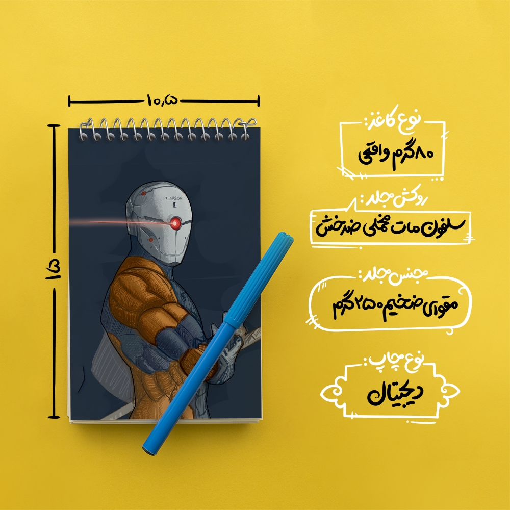 برند خندالو در زمینه تولید انواع دفاتر فانتزی و تحصیلی فعالیت میکند که به دلیل جذابیت ظاهری و طرح های متنوع طرفداران زیادی دارد. دفتر یادداشت خندالو طرح بازی متال گیر (Metal Gear) محصولی مناسب برای همه عاشقان لوازم التحریر است و همچنین همه کسانی که بنا به موقعیت تحصیل یا شغلشان با دفتر و نوشت افزار زیاد سر و کار دارند. در تولید دفتر یادداشت خندالو طرح بازی متال گیر (Metal Gear) از نوع صحافی فنر مارپیچ استفاده شده که در این نوع صحافی برگهها به راحتی چرخیده و یا بیرون آورده می شوند. دفتر های خندالو دارای جلد انعطاف پذیر از جنس مقوای گلاسه 250 گرم با روکش سلفون مات مخملی است که به شما امکان میدهد از دفتر خود بدون اینکه نگرانی از شکستن یا خراب شدن جلد را داشته باشید استفاده کنید و همچنین در این دفاتر از کاغذ 80 گرم با کیفیت استفاده شده که باعث میشود هنگام نوشتن به خوبی جوهر قلم بر روی صفحه نشسته و از خط خوردگیها جلوگیری کند. دفتر یادداشت خندالو با جنس و دوام مناسب، برگه های کاملاً سفید و خطوط طوسی دقیق را داراست که انسان را به نوشتن منظم و زیبا ترغیب میکند. طراحی کاملاً مناسب این دفاتر، به همراه کیفیت بالا، از آن یک محصول مورد علاقه و قابل اعتماد برای همه مقاطع تحصیلی میسازد. دفتر یادداشت خندالو طرح بازی متال گیر (Metal Gear) انتخابی هوشمندانه و مناسب برای افرادی است که به دنبال دفتری با کیفیت و کاربرد عالی هستند. این دفتر، همراه خوبی برای شما در تمام مراحل تحصیل و کار خواهد بود و تجربهای لذتبخش از نوشتن و آموختن را به شما هدیه میدهد.