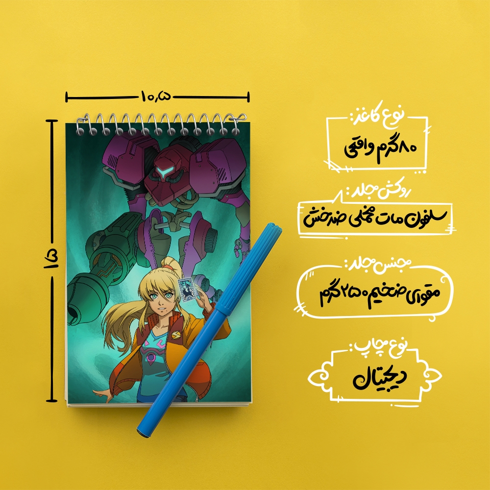 برند خندالو در زمینه تولید انواع دفاتر فانتزی و تحصیلی فعالیت میکند که به دلیل جذابیت ظاهری و طرح های متنوع طرفداران زیادی دارد. دفتر یادداشت خندالو طرح بازی متروید (Metroid) محصولی مناسب برای همه عاشقان لوازم التحریر است و همچنین همه کسانی که بنا به موقعیت تحصیل یا شغلشان با دفتر و نوشت افزار زیاد سر و کار دارند. در تولید دفتر یادداشت خندالو طرح بازی متروید (Metroid) از نوع صحافی فنر مارپیچ استفاده شده که در این نوع صحافی برگه‌ها به راحتی چرخیده و یا بیرون آورده می شوند.