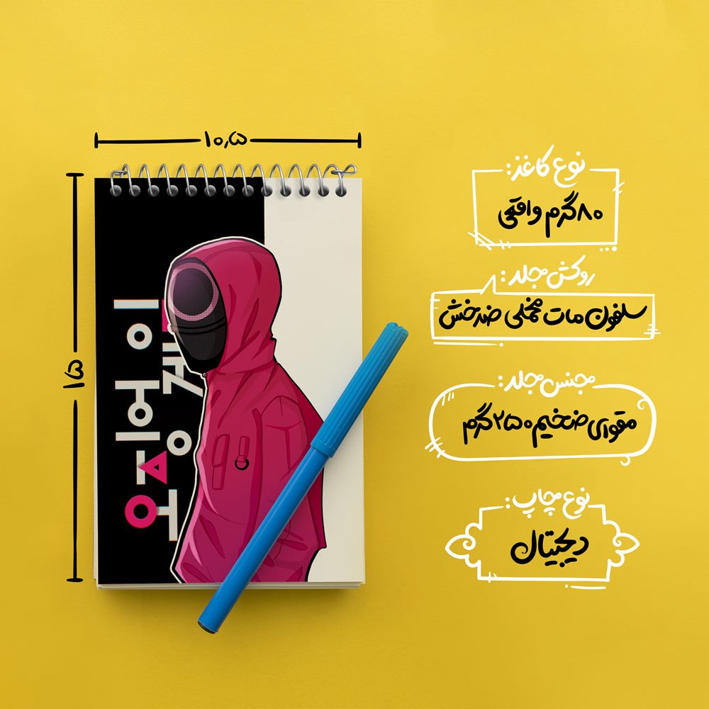 برند خندالو در زمینه تولید انواع دفاتر فانتزی و تحصیلی فعالیت میکند که به دلیل جذابیت ظاهری و طرح های متنوع طرفداران زیادی دارد. دفتر یادداشت خندالو طرح بازی مرکب Squid Game محصولی مناسب برای همه عاشقان لوازم التحریر است و همچنین همه کسانی که بنا به موقعیت تحصیل یا شغلشان با دفتر و نوشت افزار زیاد سر و کار دارند. در تولید دفتر یادداشت خندالو طرح بازی مرکب Squid Game از نوع صحافی فنر مارپیچ استفاده شده که در این نوع صحافی برگه‌ها به راحتی چرخیده و یا بیرون آورده می شوند.