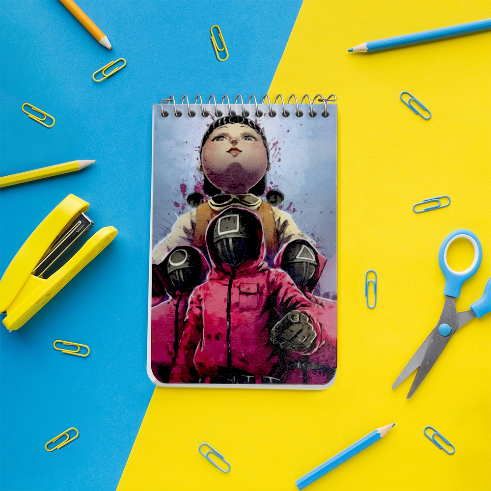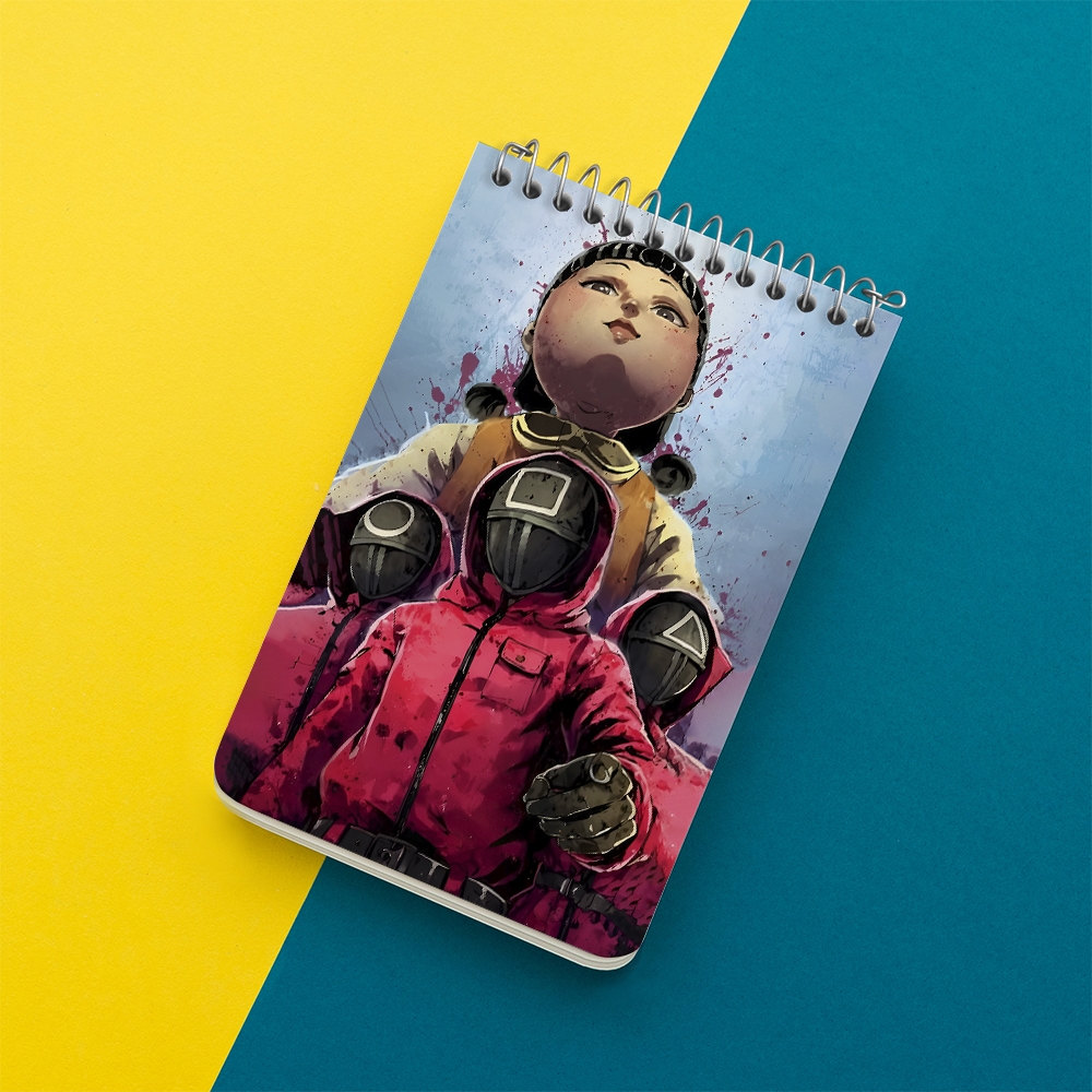 برند خندالو در زمینه تولید انواع دفاتر فانتزی و تحصیلی فعالیت میکند که به دلیل جذابیت ظاهری و طرح های متنوع طرفداران زیادی دارد. دفتر یادداشت خندالو طرح بازی مرکب (Squid Game) محصولی مناسب برای همه عاشقان لوازم التحریر است و همچنین همه کسانی که بنا به موقعیت تحصیل یا شغلشان با دفتر و نوشت افزار زیاد سر و کار دارند. در تولید دفتر یادداشت خندالو طرح بازی مرکب (Squid Game) از نوع صحافی فنر مارپیچ استفاده شده که در این نوع صحافی برگه‌ها به راحتی چرخیده و یا بیرون آورده می شوند.
