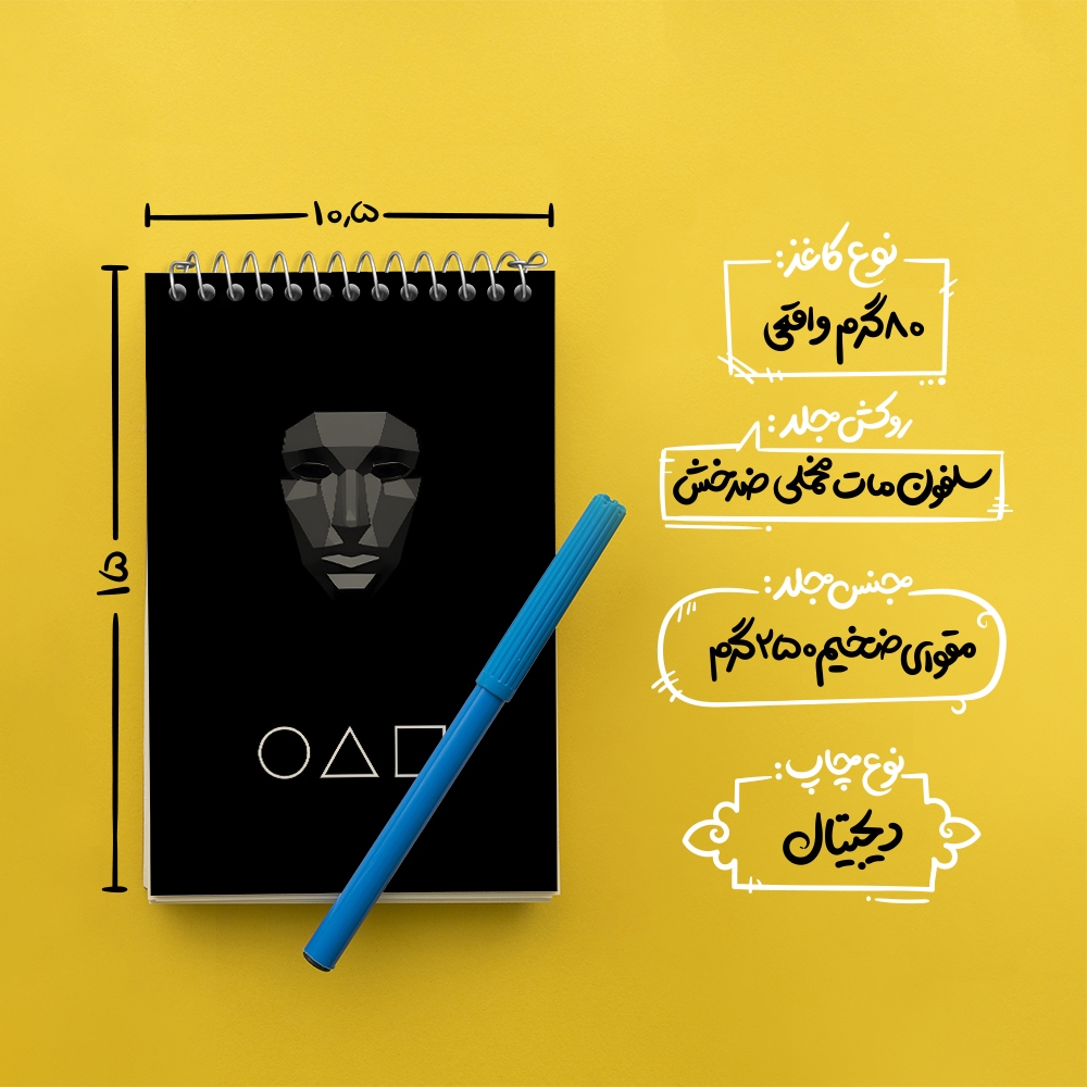 برند خندالو در زمینه تولید انواع دفاتر فانتزی و تحصیلی فعالیت میکند که به دلیل جذابیت ظاهری و طرح های متنوع طرفداران زیادی دارد. دفتر یادداشت خندالو طرح بازی مرکب (Squid Game) محصولی مناسب برای همه عاشقان لوازم التحریر است و همچنین همه کسانی که بنا به موقعیت تحصیل یا شغلشان با دفتر و نوشت افزار زیاد سر و کار دارند. در تولید دفتر یادداشت خندالو طرح بازی مرکب (Squid Game) از نوع صحافی فنر مارپیچ استفاده شده که در این نوع صحافی برگه‌ها به راحتی چرخیده و یا بیرون آورده می شوند.