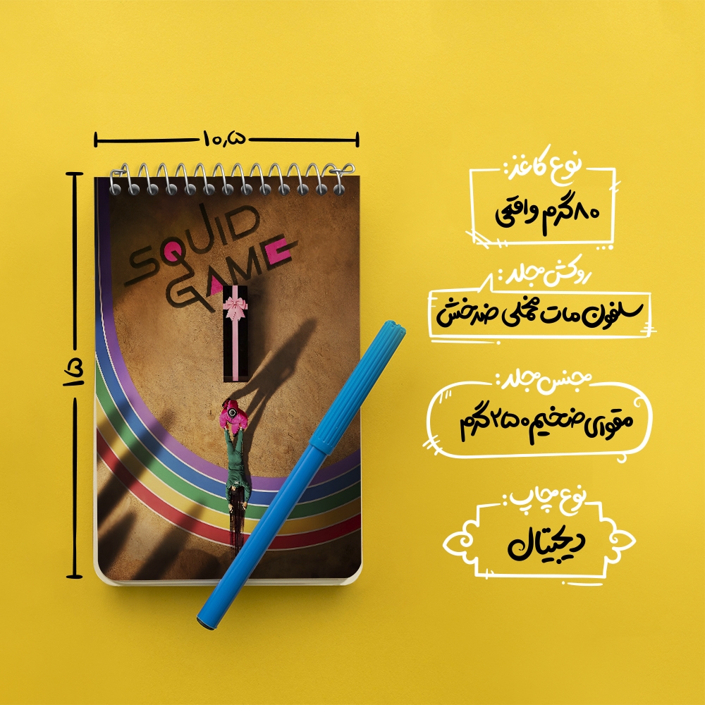 برند خندالو در زمینه تولید انواع دفاتر فانتزی و تحصیلی فعالیت میکند که به دلیل جذابیت ظاهری و طرح های متنوع طرفداران زیادی دارد. دفتر یادداشت خندالو طرح بازی مرکب (Squid Game) محصولی مناسب برای همه عاشقان لوازم التحریر است و همچنین همه کسانی که بنا به موقعیت تحصیل یا شغلشان با دفتر و نوشت افزار زیاد سر و کار دارند. در تولید دفتر یادداشت خندالو طرح بازی مرکب (Squid Game) از نوع صحافی فنر مارپیچ استفاده شده که در این نوع صحافی برگه‌ها به راحتی چرخیده و یا بیرون آورده می شوند.