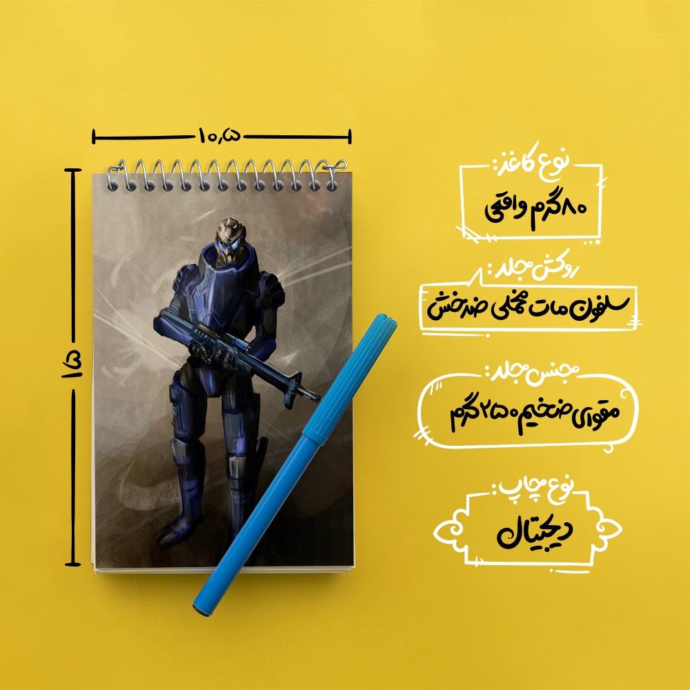 برند خندالو در زمینه تولید انواع دفاتر فانتزی و تحصیلی فعالیت میکند که به دلیل جذابیت ظاهری و طرح های متنوع طرفداران زیادی دارد. دفتر یادداشت خندالو طرح بازی مس افکت (Mass Effect) محصولی مناسب برای همه عاشقان لوازم التحریر است و همچنین همه کسانی که بنا به موقعیت تحصیل یا شغلشان با دفتر و نوشت افزار زیاد سر و کار دارند. در تولید دفتر یادداشت خندالو طرح بازی مس افکت (Mass Effect) از نوع صحافی فنر مارپیچ استفاده شده که در این نوع صحافی برگه‌ها به راحتی چرخیده و یا بیرون آورده می شوند.