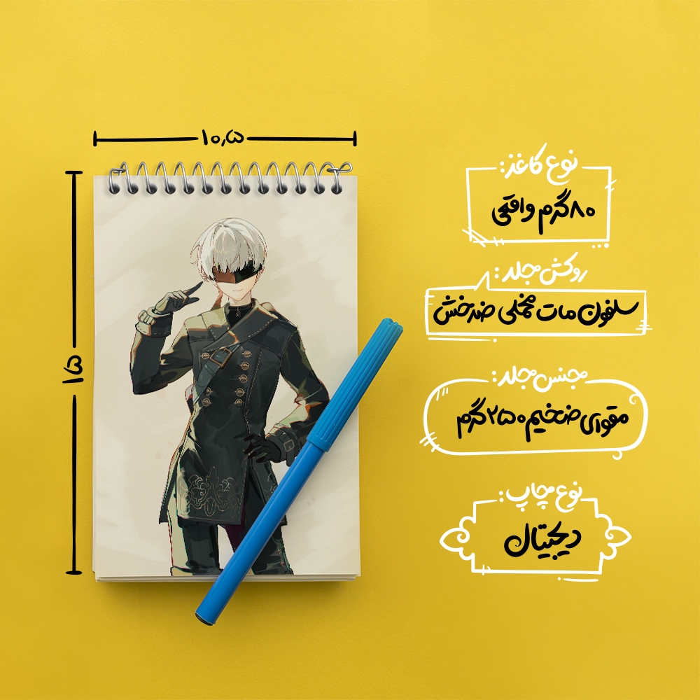 برند خندالو در زمینه تولید انواع دفاتر فانتزی و تحصیلی فعالیت میکند که به دلیل جذابیت ظاهری و طرح های متنوع طرفداران زیادی دارد. دفتر یادداشت خندالو طرح بازی نیر اتوماتا (Nier Automata) محصولی مناسب برای همه عاشقان لوازم التحریر است و همچنین همه کسانی که بنا به موقعیت تحصیل یا شغلشان با دفتر و نوشت افزار زیاد سر و کار دارند. در تولید دفتر یادداشت خندالو طرح بازی نیر اتوماتا (Nier Automata) از نوع صحافی فنر مارپیچ استفاده شده که در این نوع صحافی برگهها به راحتی چرخیده و یا بیرون آورده می شوند. دفتر های خندالو دارای جلد انعطاف پذیر از جنس مقوای گلاسه 250 گرم با روکش سلفون مات مخملی است که به شما امکان میدهد از دفتر خود بدون اینکه نگرانی از شکستن یا خراب شدن جلد را داشته باشید استفاده کنید و همچنین در این دفاتر از کاغذ 80 گرم با کیفیت استفاده شده که باعث میشود هنگام نوشتن به خوبی جوهر قلم بر روی صفحه نشسته و از خط خوردگیها جلوگیری کند. دفتر یادداشت خندالو با جنس و دوام مناسب، برگه های کاملاً سفید و خطوط طوسی دقیق را داراست که انسان را به نوشتن منظم و زیبا ترغیب میکند. طراحی کاملاً مناسب این دفاتر، به همراه کیفیت بالا، از آن یک محصول مورد علاقه و قابل اعتماد برای همه مقاطع تحصیلی میسازد. دفتر یادداشت خندالو طرح بازی نیر اتوماتا (Nier Automata) انتخابی هوشمندانه و مناسب برای افرادی است که به دنبال دفتری با کیفیت و کاربرد عالی هستند. این دفتر، همراه خوبی برای شما در تمام مراحل تحصیل و کار خواهد بود و تجربهای لذتبخش از نوشتن و آموختن را به شما هدیه میدهد.