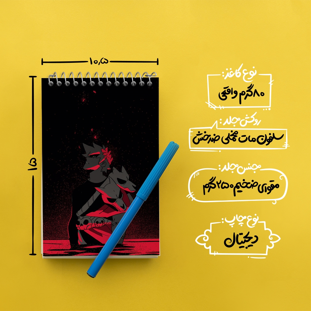 برند خندالو در زمینه تولید انواع دفاتر فانتزی و تحصیلی فعالیت میکند که به دلیل جذابیت ظاهری و طرح های متنوع طرفداران زیادی دارد. دفتر یادداشت خندالو طرح بازی هادس (Hades) محصولی مناسب برای همه عاشقان لوازم التحریر است و همچنین همه کسانی که بنا به موقعیت تحصیل یا شغلشان با دفتر و نوشت افزار زیاد سر و کار دارند. در تولید دفتر یادداشت خندالو طرح بازی هادس (Hades) از نوع صحافی فنر مارپیچ استفاده شده که در این نوع صحافی برگه‌ها به راحتی چرخیده و یا بیرون آورده می شوند.