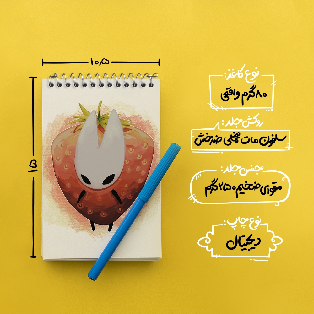 برند خندالو در زمینه تولید انواع دفاتر فانتزی و تحصیلی فعالیت میکند که به دلیل جذابیت ظاهری و طرح های متنوع طرفداران زیادی دارد. دفتر یادداشت خندالو طرح بازی هالو نایت (Hollow Knight) محصولی مناسب برای همه عاشقان لوازم التحریر است و همچنین همه کسانی که بنا به موقعیت تحصیل یا شغلشان با دفتر و نوشت افزار زیاد سر و کار دارند. در تولید دفتر یادداشت خندالو طرح بازی هالو نایت (Hollow Knight) از نوع صحافی فنر مارپیچ استفاده شده که در این نوع صحافی برگه‌ها به راحتی چرخیده و یا بیرون آورده می شوند.