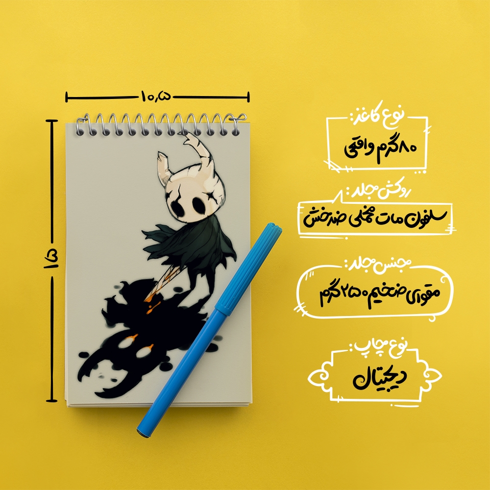 برند خندالو در زمینه تولید انواع دفاتر فانتزی و تحصیلی فعالیت میکند که به دلیل جذابیت ظاهری و طرح های متنوع طرفداران زیادی دارد. دفتر یادداشت خندالو طرح بازی هالو نایت (Hollow Knight) محصولی مناسب برای همه عاشقان لوازم التحریر است و همچنین همه کسانی که بنا به موقعیت تحصیل یا شغلشان با دفتر و نوشت افزار زیاد سر و کار دارند. در تولید دفتر یادداشت خندالو طرح بازی هالو نایت (Hollow Knight) از نوع صحافی فنر مارپیچ استفاده شده که در این نوع صحافی برگهها به راحتی چرخیده و یا بیرون آورده می شوند. دفتر های خندالو دارای جلد انعطاف پذیر از جنس مقوای گلاسه 250 گرم با روکش سلفون مات مخملی است که به شما امکان میدهد از دفتر خود بدون اینکه نگرانی از شکستن یا خراب شدن جلد را داشته باشید استفاده کنید و همچنین در این دفاتر از کاغذ 80 گرم با کیفیت استفاده شده که باعث میشود هنگام نوشتن به خوبی جوهر قلم بر روی صفحه نشسته و از خط خوردگیها جلوگیری کند. دفتر یادداشت خندالو با جنس و دوام مناسب، برگه های کاملاً سفید و خطوط طوسی دقیق را داراست که انسان را به نوشتن منظم و زیبا ترغیب میکند. طراحی کاملاً مناسب این دفاتر، به همراه کیفیت بالا، از آن یک محصول مورد علاقه و قابل اعتماد برای همه مقاطع تحصیلی میسازد. دفتر یادداشت خندالو طرح بازی هالو نایت (Hollow Knight) انتخابی هوشمندانه و مناسب برای افرادی است که به دنبال دفتری با کیفیت و کاربرد عالی هستند. این دفتر، همراه خوبی برای شما در تمام مراحل تحصیل و کار خواهد بود و تجربهای لذتبخش از نوشتن و آموختن را به شما هدیه میدهد.