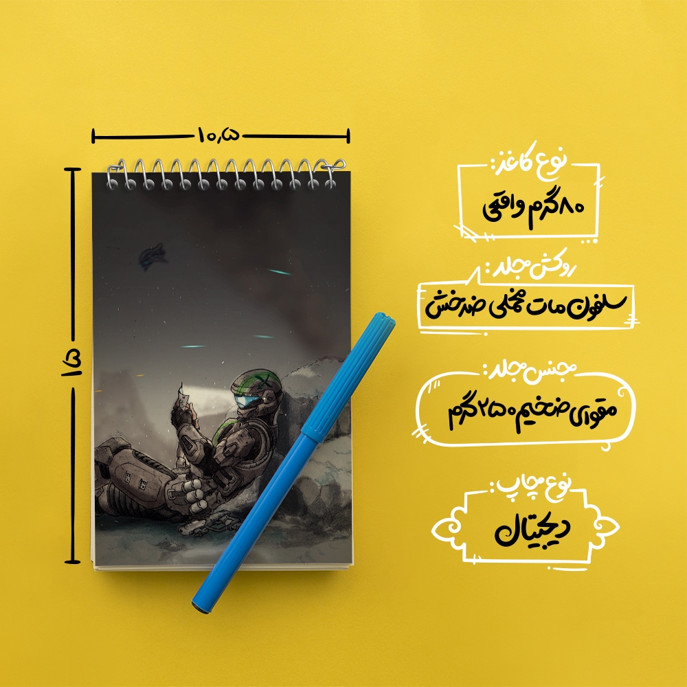 برند خندالو در زمینه تولید انواع دفاتر فانتزی و تحصیلی فعالیت میکند که به دلیل جذابیت ظاهری و طرح های متنوع طرفداران زیادی دارد. دفتر یادداشت خندالو طرح بازی هیلو (Halo) محصولی مناسب برای همه عاشقان لوازم التحریر است و همچنین همه کسانی که بنا به موقعیت تحصیل یا شغلشان با دفتر و نوشت افزار زیاد سر و کار دارند. در تولید دفتر یادداشت خندالو طرح بازی هیلو (Halo) از نوع صحافی فنر مارپیچ استفاده شده که در این نوع صحافی برگه‌ها به راحتی چرخیده و یا بیرون آورده می شوند.