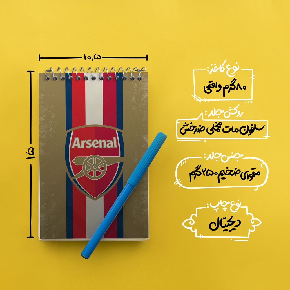 برند خندالو در زمینه تولید انواع دفاتر فانتزی و تحصیلی فعالیت میکند که به دلیل جذابیت ظاهری و طرح های متنوع طرفداران زیادی دارد. دفتر یادداشت خندالو طرح باشگاه آرسنال محصولی مناسب برای همه عاشقان لوازم التحریر است و همچنین همه کسانی که بنا به موقعیت تحصیل یا شغلشان با دفتر و نوشت افزار زیاد سر و کار دارند. در تولید دفتر یادداشت خندالو طرح باشگاه آرسنال از نوع صحافی فنر مارپیچ استفاده شده که در این نوع صحافی برگه‌ها به راحتی چرخیده و یا بیرون آورده می شوند.