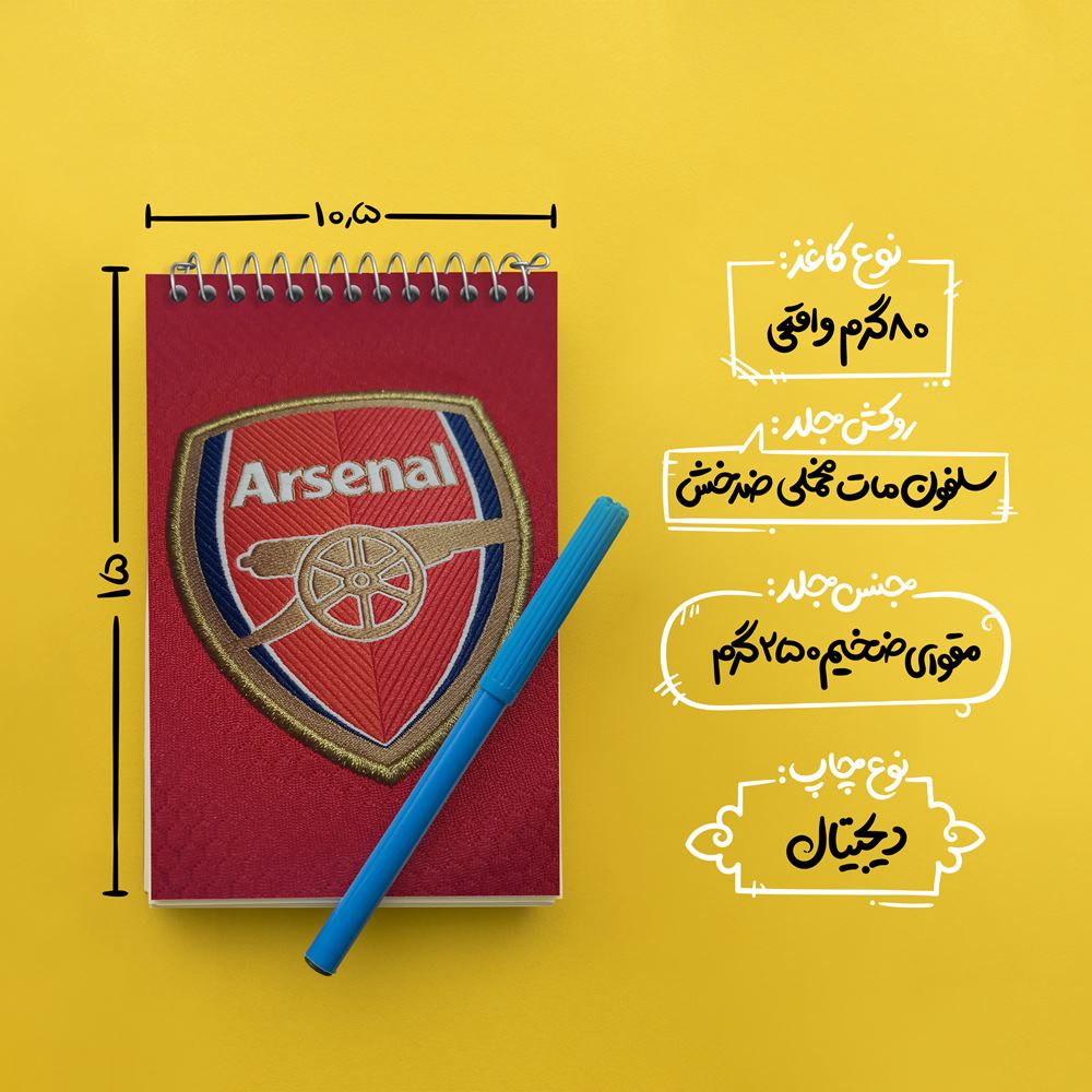 برند خندالو در زمینه تولید انواع دفاتر فانتزی و تحصیلی فعالیت میکند که به دلیل جذابیت ظاهری و طرح های متنوع طرفداران زیادی دارد. دفتر یادداشت خندالو طرح باشگاه آرسنال محصولی مناسب برای همه عاشقان لوازم التحریر است و همچنین همه کسانی که بنا به موقعیت تحصیل یا شغلشان با دفتر و نوشت افزار زیاد سر و کار دارند. در تولید دفتر یادداشت خندالو طرح باشگاه آرسنال از نوع صحافی فنر مارپیچ استفاده شده که در این نوع صحافی برگه‌ها به راحتی چرخیده و یا بیرون آورده می شوند.