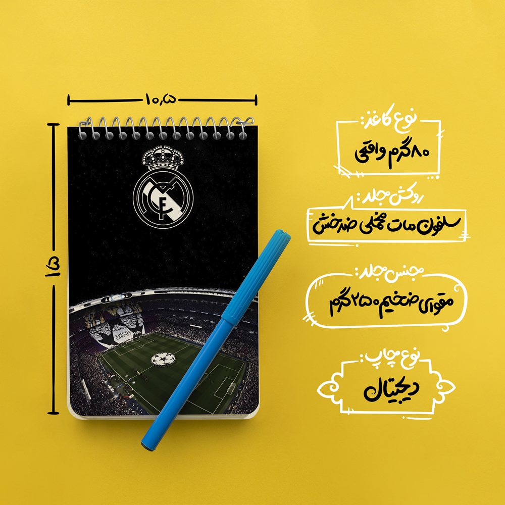 برند خندالو در زمینه تولید انواع دفاتر فانتزی و تحصیلی فعالیت میکند که به دلیل جذابیت ظاهری و طرح های متنوع طرفداران زیادی دارد. دفتر یادداشت خندالو طرح باشگاه رئال مادرید محصولی مناسب برای همه عاشقان لوازم التحریر است و همچنین همه کسانی که بنا به موقعیت تحصیل یا شغلشان با دفتر و نوشت افزار زیاد سر و کار دارند. در تولید دفتر یادداشت خندالو طرح باشگاه رئال مادرید از نوع صحافی فنر مارپیچ استفاده شده که در این نوع صحافی برگه‌ها به راحتی چرخیده و یا بیرون آورده می شوند.