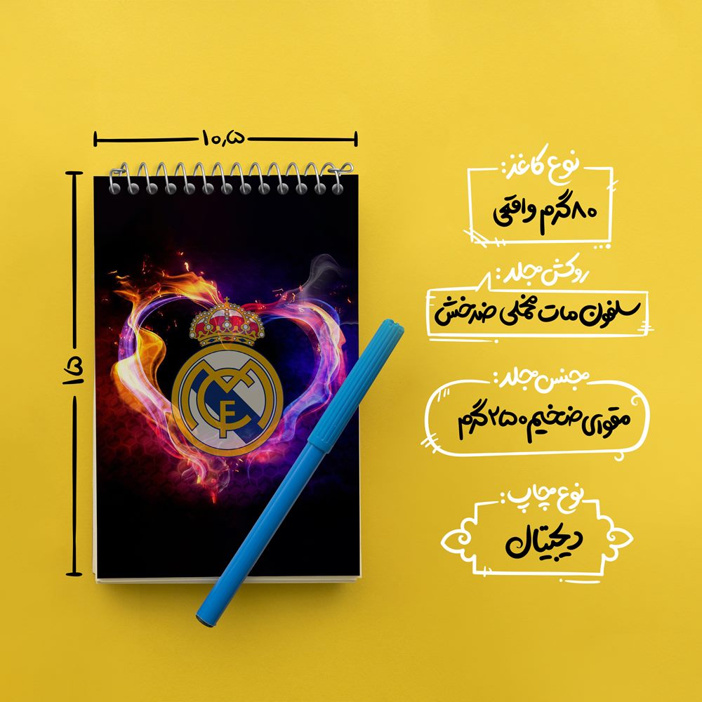 برند خندالو در زمینه تولید انواع دفاتر فانتزی و تحصیلی فعالیت میکند که به دلیل جذابیت ظاهری و طرح های متنوع طرفداران زیادی دارد. دفتر یادداشت خندالو طرح باشگاه رئال مادرید محصولی مناسب برای همه عاشقان لوازم التحریر است و همچنین همه کسانی که بنا به موقعیت تحصیل یا شغلشان با دفتر و نوشت افزار زیاد سر و کار دارند. در تولید دفتر یادداشت خندالو طرح باشگاه رئال مادرید از نوع صحافی فنر مارپیچ استفاده شده که در این نوع صحافی برگه‌ها به راحتی چرخیده و یا بیرون آورده می شوند.