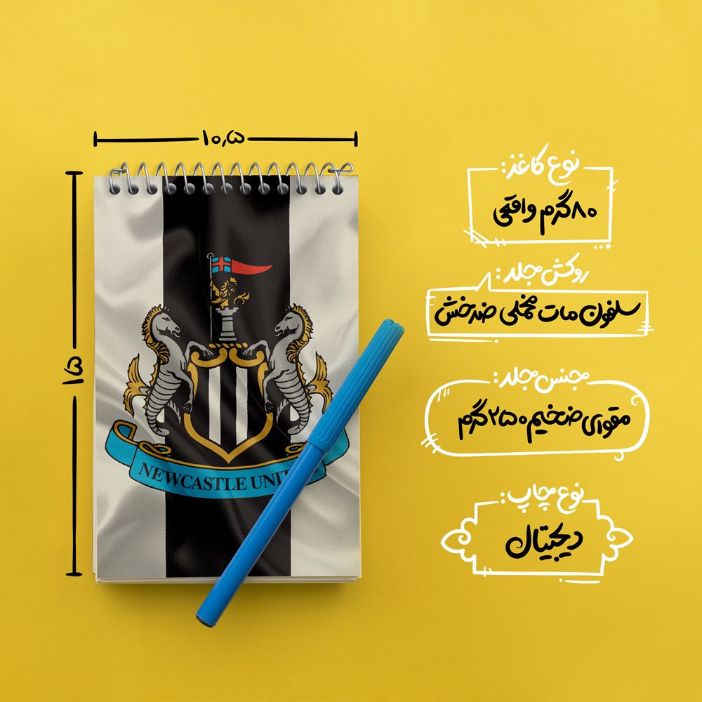 برند خندالو در زمینه تولید انواع دفاتر فانتزی و تحصیلی فعالیت میکند که به دلیل جذابیت ظاهری و طرح های متنوع طرفداران زیادی دارد. دفتر یادداشت خندالو طرح باشگاه نیوکاسل محصولی مناسب برای همه عاشقان لوازم التحریر است و همچنین همه کسانی که بنا به موقعیت تحصیل یا شغلشان با دفتر و نوشت افزار زیاد سر و کار دارند. در تولید دفتر یادداشت خندالو طرح باشگاه نیوکاسل از نوع صحافی فنر مارپیچ استفاده شده که در این نوع صحافی برگه‌ها به راحتی چرخیده و یا بیرون آورده می شوند.