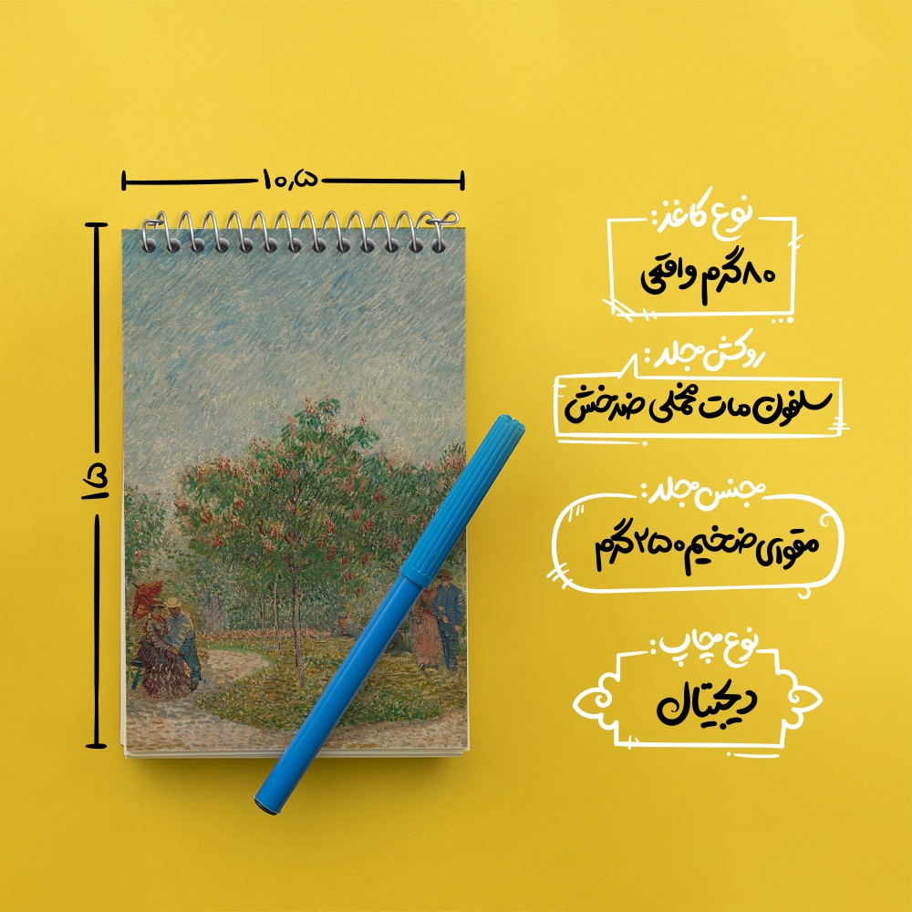 برند خندالو در زمینه تولید انواع دفاتر فانتزی و تحصیلی فعالیت میکند که به دلیل جذابیت ظاهری و طرح های متنوع طرفداران زیادی دارد. دفتر یادداشت خندالو طرح باغ با زوج های خواستگار ونسان ونگوگ (Van Gogh) محصولی مناسب برای همه عاشقان لوازم التحریر است و همچنین همه کسانی که بنا به موقعیت تحصیل یا شغلشان با دفتر و نوشت افزار زیاد سر و کار دارند. در تولید دفتر یادداشت خندالو طرح باغ با زوج های خواستگار ونسان ونگوگ (Van Gogh) از نوع صحافی فنر مارپیچ استفاده شده که در این نوع صحافی برگهها به راحتی چرخیده و یا بیرون آورده می شوند. دفتر های خندالو دارای جلد انعطاف پذیر از جنس مقوای گلاسه 250 گرم با روکش سلفون مات مخملی است که به شما امکان میدهد از دفتر خود بدون اینکه نگرانی از شکستن یا خراب شدن جلد را داشته باشید استفاده کنید و همچنین در این دفاتر از کاغذ 80 گرم با کیفیت استفاده شده که باعث میشود هنگام نوشتن به خوبی جوهر قلم بر روی صفحه نشسته و از خط خوردگیها جلوگیری کند. دفتر یادداشت خندالو با جنس و دوام مناسب، برگه های کاملاً سفید و خطوط طوسی دقیق را داراست که انسان را به نوشتن منظم و زیبا ترغیب میکند. طراحی کاملاً مناسب این دفاتر، به همراه کیفیت بالا، از آن یک محصول مورد علاقه و قابل اعتماد برای همه مقاطع تحصیلی میسازد. دفتر یادداشت خندالو طرح باغ با زوج های خواستگار ونسان ونگوگ (Van Gogh) انتخابی هوشمندانه و مناسب برای افرادی است که به دنبال دفتری با کیفیت و کاربرد عالی هستند. این دفتر، همراه خوبی برای شما در تمام مراحل تحصیل و کار خواهد بود و تجربهای لذتبخش از نوشتن و آموختن را به شما هدیه میدهد.