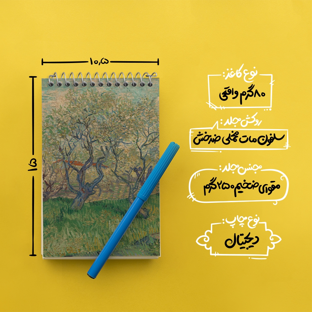 برند خندالو در زمینه تولید انواع دفاتر فانتزی و تحصیلی فعالیت میکند که به دلیل جذابیت ظاهری و طرح های متنوع طرفداران زیادی دارد. دفتر یادداشت خندالو طرح باغ های در حال شکوفه دادن ونسان ونگوگ (Van Gogh) محصولی مناسب برای همه عاشقان لوازم التحریر است و همچنین همه کسانی که بنا به موقعیت تحصیل یا شغلشان با دفتر و نوشت افزار زیاد سر و کار دارند. در تولید دفتر یادداشت خندالو طرح باغ های در حال شکوفه دادن ونسان ونگوگ (Van Gogh) از نوع صحافی فنر مارپیچ استفاده شده که در این نوع صحافی برگهها به راحتی چرخیده و یا بیرون آورده می شوند. دفتر های خندالو دارای جلد انعطاف پذیر از جنس مقوای گلاسه 250 گرم با روکش سلفون مات مخملی است که به شما امکان میدهد از دفتر خود بدون اینکه نگرانی از شکستن یا خراب شدن جلد را داشته باشید استفاده کنید و همچنین در این دفاتر از کاغذ 80 گرم با کیفیت استفاده شده که باعث میشود هنگام نوشتن به خوبی جوهر قلم بر روی صفحه نشسته و از خط خوردگیها جلوگیری کند. دفتر یادداشت خندالو با جنس و دوام مناسب، برگه های کاملاً سفید و خطوط طوسی دقیق را داراست که انسان را به نوشتن منظم و زیبا ترغیب میکند. طراحی کاملاً مناسب این دفاتر، به همراه کیفیت بالا، از آن یک محصول مورد علاقه و قابل اعتماد برای همه مقاطع تحصیلی میسازد. دفتر یادداشت خندالو طرح باغ های در حال شکوفه دادن ونسان ونگوگ (Van Gogh) انتخابی هوشمندانه و مناسب برای افرادی است که به دنبال دفتری با کیفیت و کاربرد عالی هستند. این دفتر، همراه خوبی برای شما در تمام مراحل تحصیل و کار خواهد بود و تجربهای لذتبخش از نوشتن و آموختن را به شما هدیه میدهد.